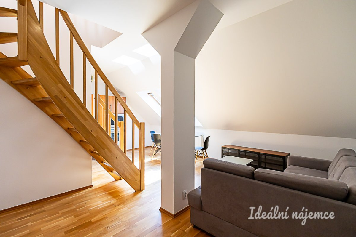 Nabízíme k dlouhodobému podnájmu atraktivní a prosvětlený mezonetový byt o dispozici 3+kk a celkové ploše 76 m². Tato moderní jednotka se nachází v posledním, sedmém patře udržovaného bytového domu s výtahem v žádané lokalitě Praha 7 – Holešovice. Součástí pronájmu je také praktický sklep pro uložení sezónních věcí.