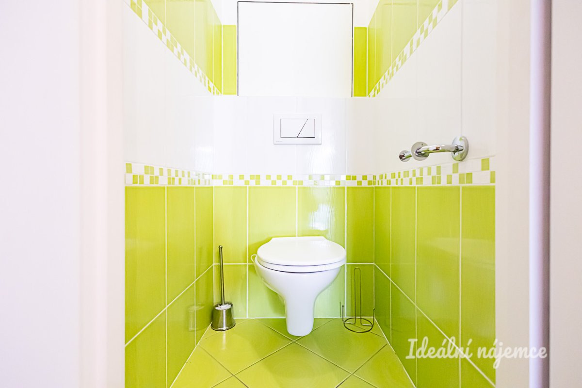 Koupelna je vybavena vanou, umyvadlem a zrcadlovou skříňkou. Toaleta je samostatná. V předsíni se nachází další velká šatní skříň a k bytu náleží také praktický sklep.