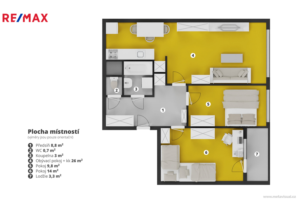 | Dispozice/podlahová plocha: | 3+kk/65 m² |