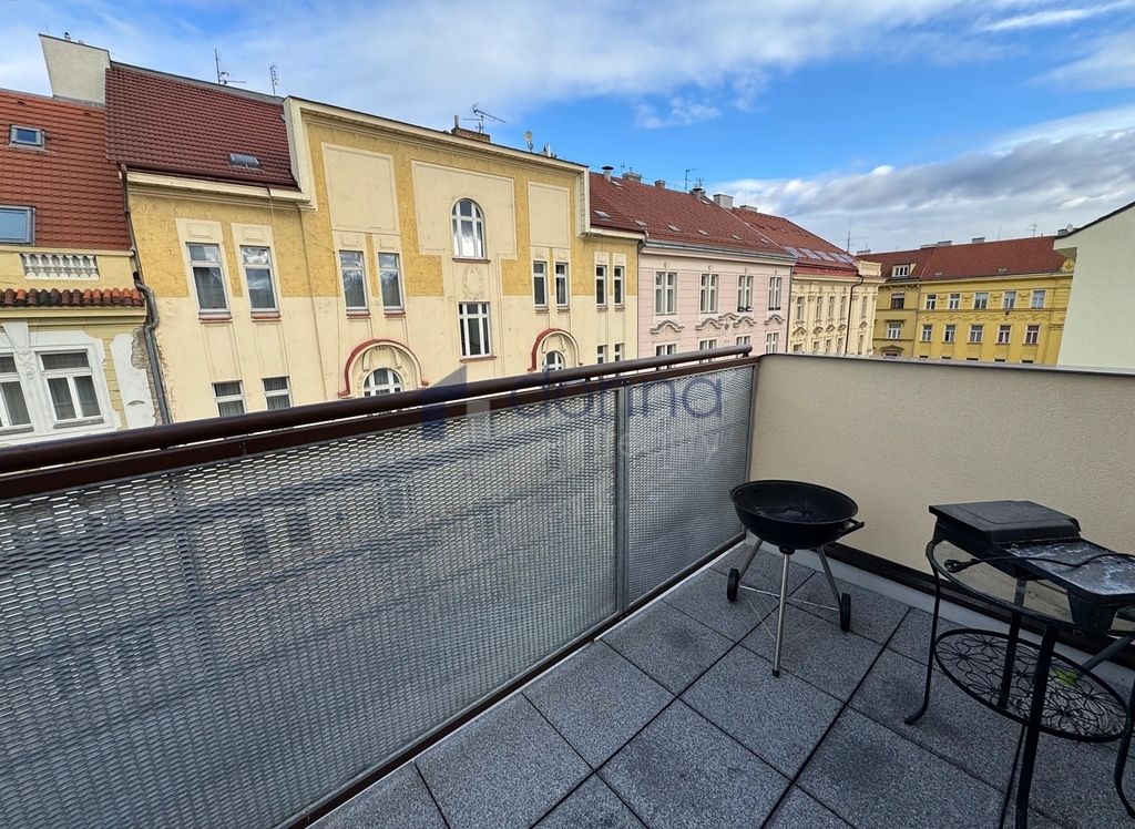 Nabízím k pronájmu byt 3+kk, o ploše 88m2 s prostornou terasou 11m2, situovaný v 5. podlaží cihlového domu bez výtahu, ulice, Vrázova, Praha 5 - Smíchov.
