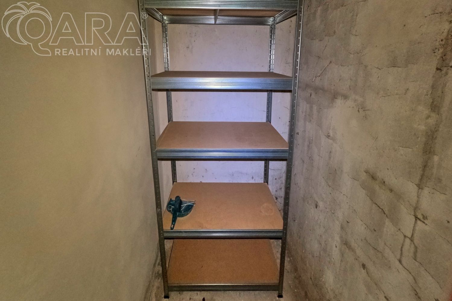 Byt 3+kk o podlahové ploše 56 m2 se nachází ve 5. nadzemním podlaží cihlového domu ze 70. let. Náleží k němu zděný sklep, který má další 2 m2. Obývací pokoj s kuchyní a menší pokoj jsou orientovány na sever do vnitrobloku a na jižní straně do ulice se nachází větší z ložnic.