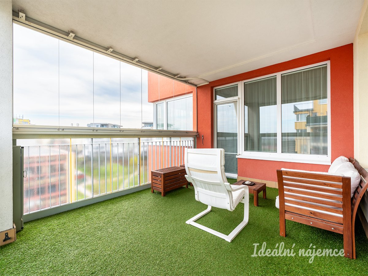 Byt se nabízí vybavený. V na míru dělané kuchyni najdeme vestavěnou myčku nádobí, ledničku s mrazákem, elektrickou troubu, indukční varnou desku a digestoř. Kuchyně nabízí dostatek úložných prostor i pracovní plochy. Obývací část je zařízena novou rozkládací pohovkou, konferenčním stolem a televizí. Dále nabízí jídelní stůl s židlemi, v pracovní části nalezneme prostorný stůl a komody. Z obývacího pokoje se dostaneme na lodžii o výměře 16m2, součástí které je zahradní nábytek k posezení.