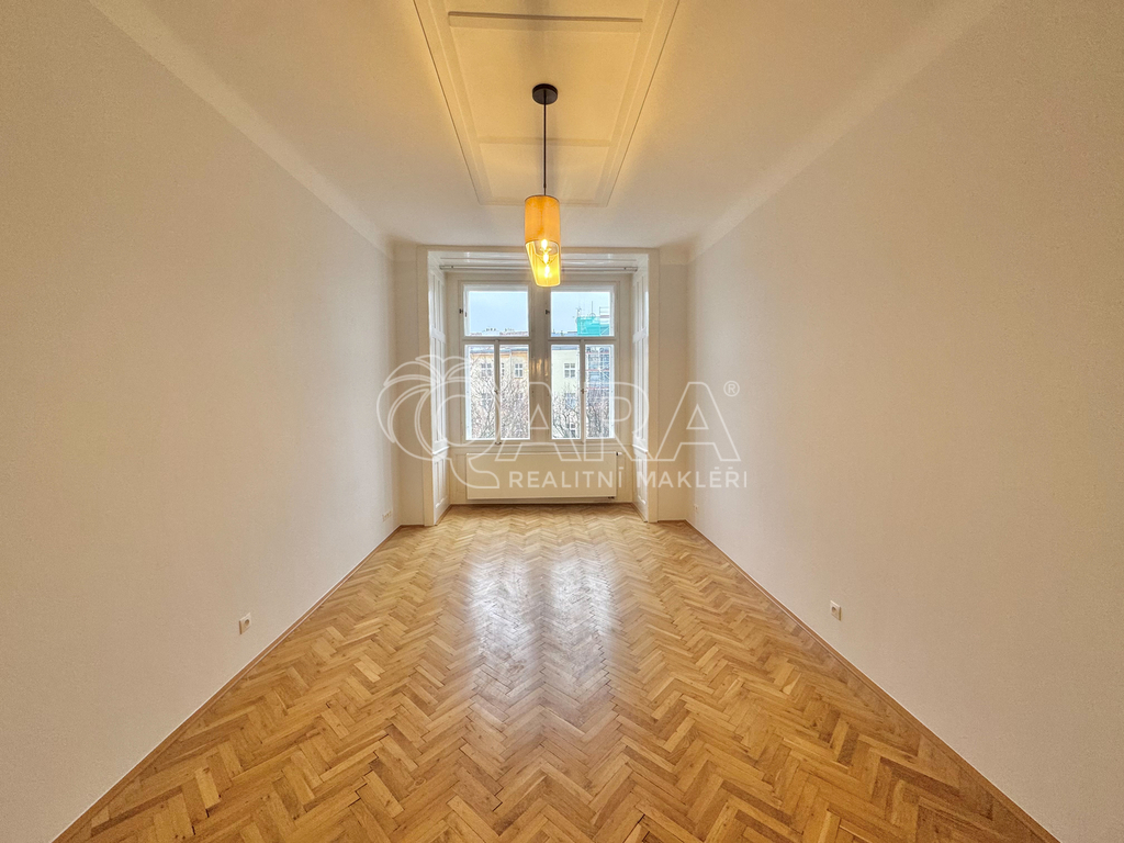 Nabízíme k dlouhodobému pronájmu luxusní, prostorný byt / kancelář 4+1 (147 m²) s balkonem a velkým sklepem (20 m2) v prestižní lokalitě Královských Vinohrad.