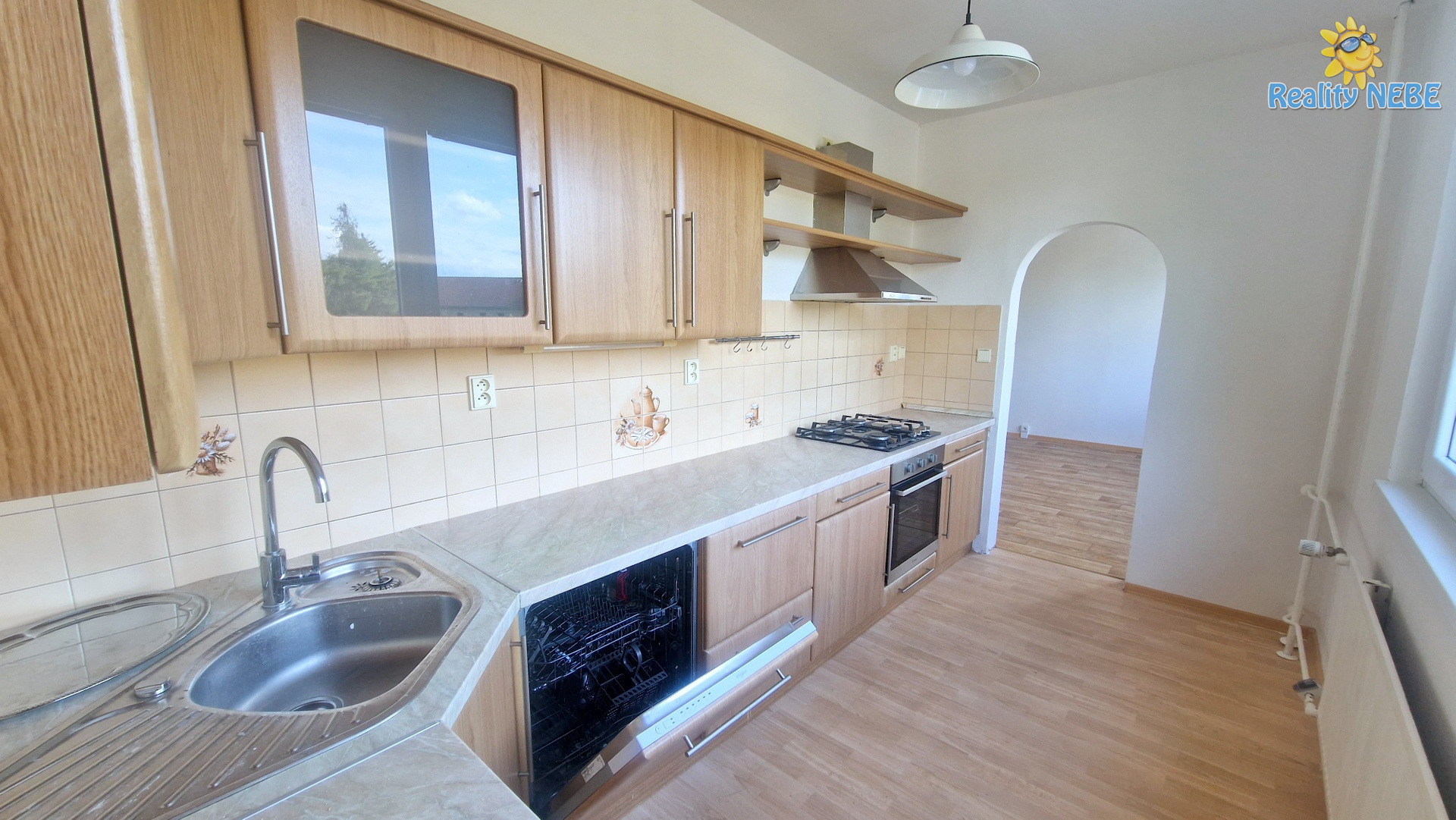 Součástí je kuchyňská linka s plynovým sporákem a širokou myčkou. Dále je v bytě mnoho vestavných skříní, plus ještě v suterénu železná sklepní kóje pro uskladnění dalších věcí.