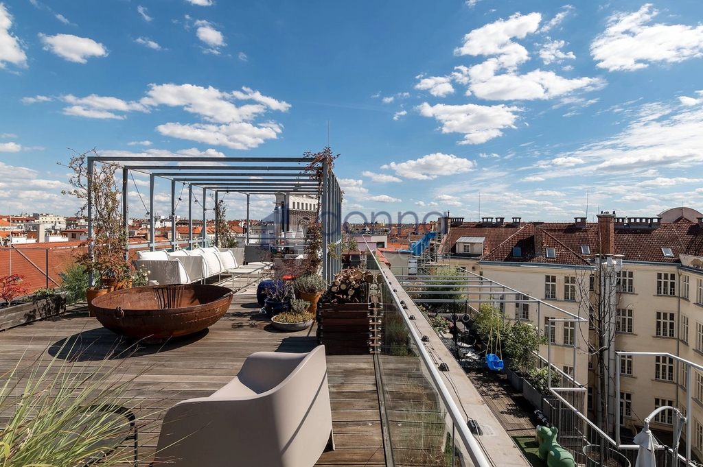 Nabízíme k pronájmu luxusní reprezentativní mezonetový byt 4+kk, kde celková plocha bytu včetně tří teras je 454 m2, ve vyhledávané lokalitě pražských Vinohrad, ul. Laubova, Praha 3.