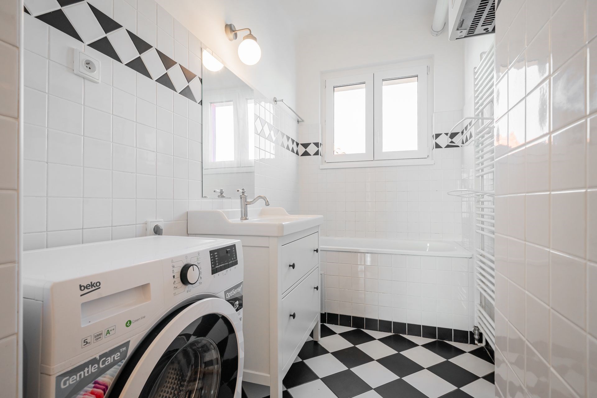 Byt má dispozici 5+1 s čistou obytnou plochou 150 m² a nabízí využitelnou půdu, sdílenou kolárnu, zastřešenou terasu, parkovací stání na vlastním pozemku a malou zahrádku na samostatném pozemku o velikosti 110 m². Vila prošla citlivou rekonstrukcí a zachovala si výrazné prvorepublikové prvky – kombinace historického šarmu s moderním komfortem.