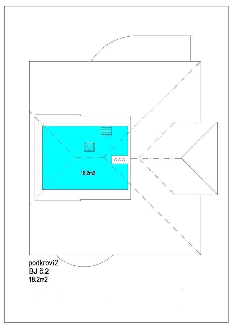 Půda: Pochozí, určená k uložení věcí, přístupná dřevěným schodištěm.