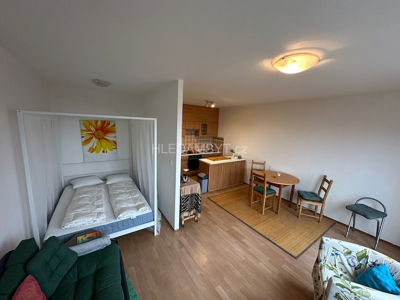Pronájem bytu ve velice dobrém stavu, který tímto nabízíme bude k nastěhování od 1. ledna 2026 a lze dlouhodobě. Jedná se o byt v jedenáctém nadzemním podlaží zatepleného domu s výtahem. Okna orientována na jižní stranu s výhledem do prostoru. Je zde kuchyňská linka, sklokeramická varná deska s troubou, nová lednice, pračka, postel, 2 x křeslo, jídelní pult, psací stůl, šatní skříň. Plastová okna se žaluziemi. Na podlahách dlažba a PVC. Ústřední vytápění. Koupelna se sprchovým koutem a WC dohromady. Vhodné pro 1 - 2 osoby. K bytu patří malý balkon. MHD: 6 minut busem na metro Kobylisy.