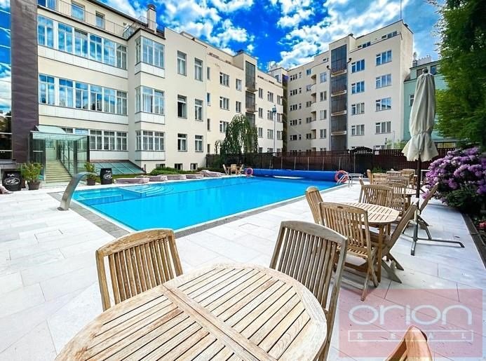 Nabízíme k pronájmu luxusní zařízený byt 1+kk s balkonem ve 4. patře neorenesančního domu Rezidence Italská z konce 19. století s udržovanou soukromou zahradou s vyhřívaným bazénem ve vyhledávané lokalitě Praha 2 - Vinohrady. Rezidenční dům je po kompletní rekonstrukci se zachováním všech architektonických prvků a je vybaven prémiovými a luxusními materiály. Nadstardantně zařízený byt o velikosti 38 m2 nabízí obývací pokoj orientovaný do vnitrobloku s výhledem na zahradu a bazén, plně vybaveným kuchyňským koutem vč. nádobí, koupelnu s vanou a s toaletou a balkon a velikosti 11 m2. Byt je vybaven italským nábytkem, ručně tkanými koberci, luxusními spotřebiči,, na podlahách jsou dřevěné parkety a dlažba. K vybavení bytu patří pračka se sušičkou, klimatizace, videotelefon, satelitní TV. Možnost zajistit pravidelný úklid bytu. V bytě jsou zachovány původní prvky. V rámci rezidence je také sauna, několikapatrové garáže, výtah, kamerový systém a ostraha. Součástí domu je vyhlášená italská cukrárna s produkty dovezenými přímo z Itálie. Možnost parkování v podzemní garáži za cenu od 200 Eur + DPH. Dům se nachází jen pár kroků od stanice metra Náměstí Míru, pár minut chůze na Václavské náměstí. V blízkosti je množství kaváren, vyhlášených restaurací, bister, lokálních obchodů, oblíbený park Riegrovy sady.