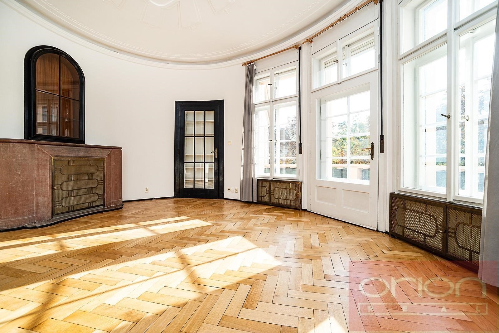 Nabízíme k pronájmu exkluzivní, nezařízený byt 6+1 o celkové ploše 274 m² s terasou, situovaný v 1. patře kompletně zrekonstruované reprezentativní neobarokní vily v prestižní rezidenční čtvrti v Praha 6 - Střešovice (Ořechovka). Byt disponuje vstupní halou, velkorysým prostorem se vstupem na terasu o velikosti 26 m² s výhledem do pečlivě udržované zahrady, prostorným obývacím pokojem s jídelnou, plně vybavenou kuchyní, čtyřmi ložnicemi, dvěma koupelnami, komorou, prádelnou s pračkou a samostatnou toaletou.