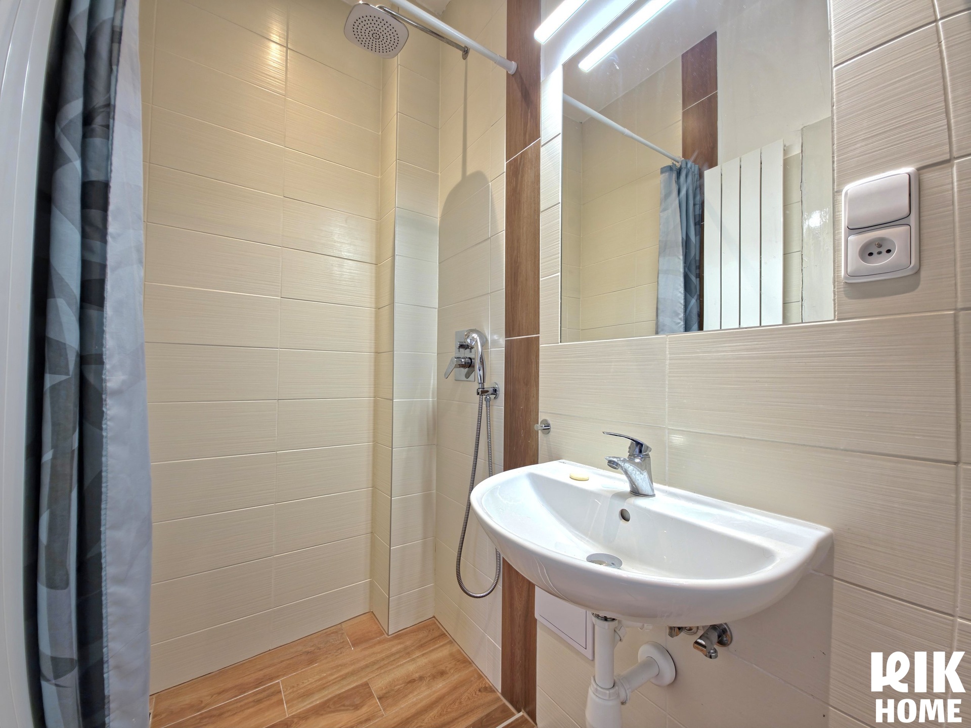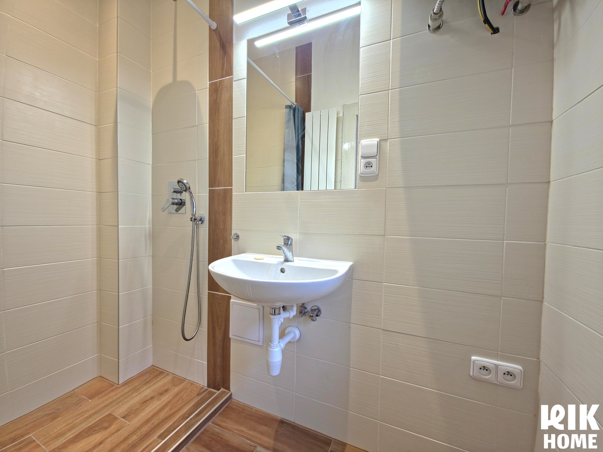Byt nabízí efektivně řešený prostor, který je ideální pro jednotlivce nebo mladý pár. I na menší ploše naleznete vše potřebné: obývací pokoj s kuchyňským koutem a oddělenou ložnici. Velkou výhodou je kompletní vybavení spotřebiči – k dispozici je lednice, myčka i pračka. Díky umístění ve vyšším patře a orientaci do dvora je byt světlý a poskytuje dostatek soukromí.