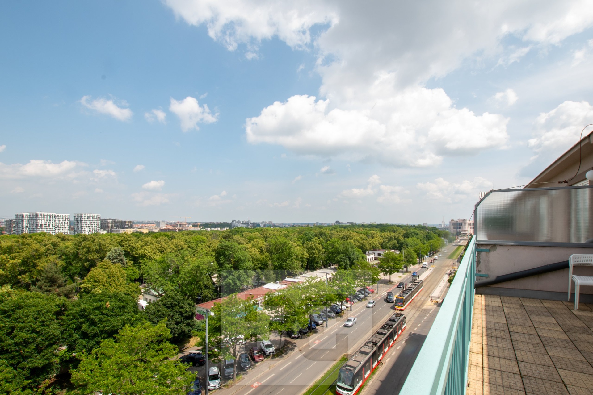 Dominantou bytu je nádherný výhled na severní část Prahy, zatímco z jižní strany se nabízí pohled do tichého vnitrobloku. Díky poloze v nejvyšším patře si byt zachovává maximální soukromí a klid.