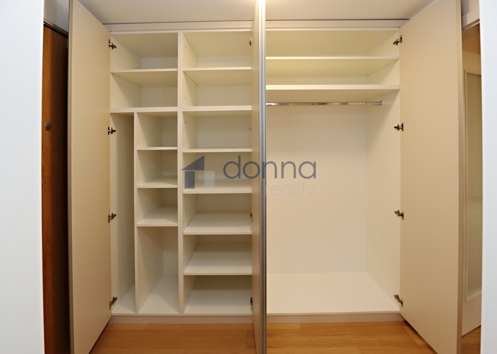 Kuchyňský kout je vybaven všemi potřebnými spotřebiči: velká lednice s mrazákem, myčka, indukční varná deska, el. trouba a digestoř. Naproti kuchyni je stěna opatřená poličkami a skříňkami. Byt je slunný, proto jsou okna opatřená vnějšími el. žaluziemi.