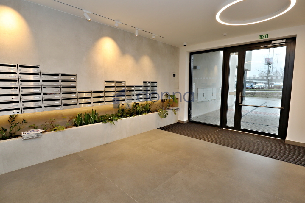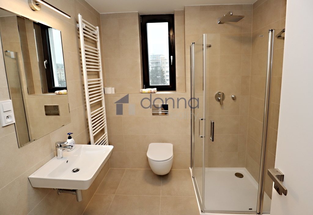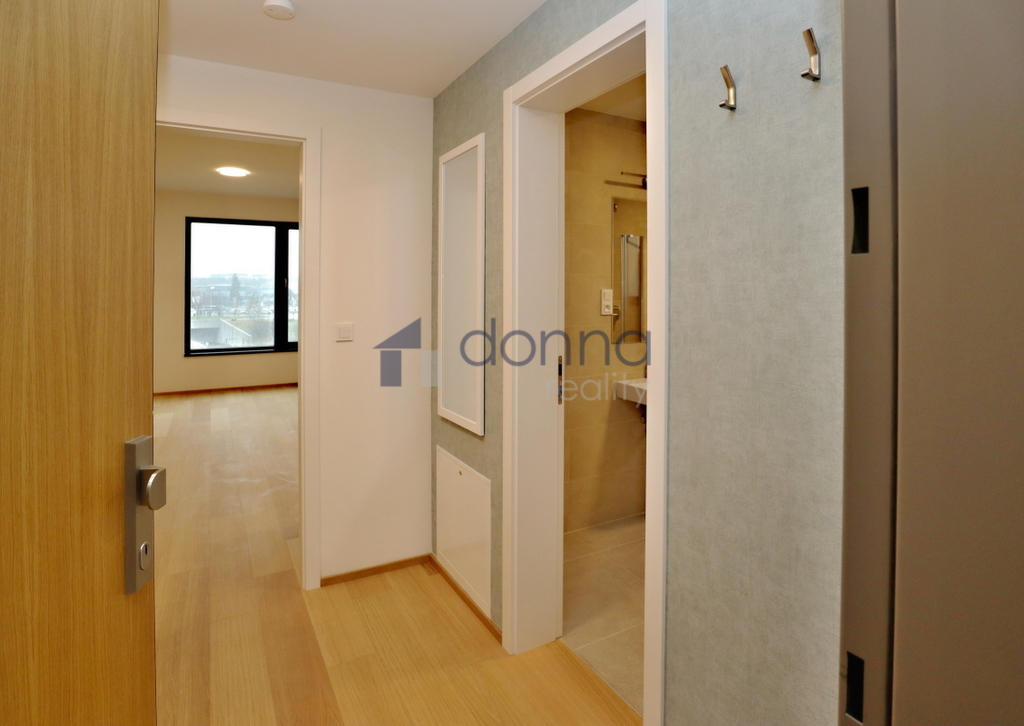Nabízíme k dlouhodobému pronájmu úplně nový byt 1+kk, 40m2 + lodžie cca 3 m2 + sklep 3,3 m2, situovaný ve 4. patře novostavby se 2 výtahy, ul. V Třešňovce, Praha 9 - Hrdlořezy.
