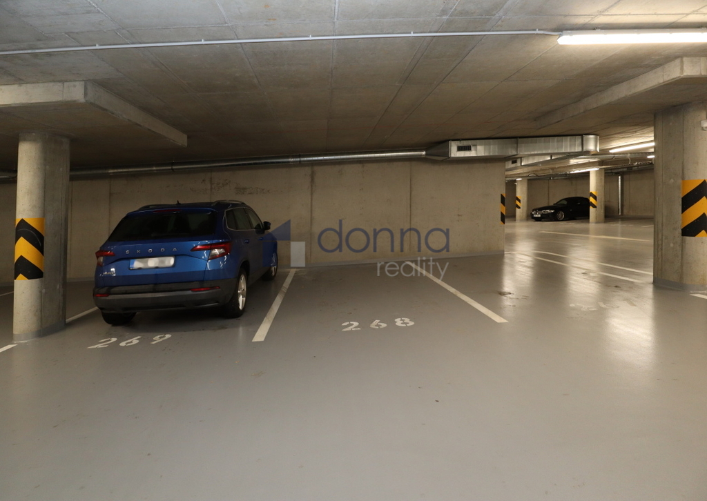 Součástí nájmu je i garážové stání v suterénu budovy.