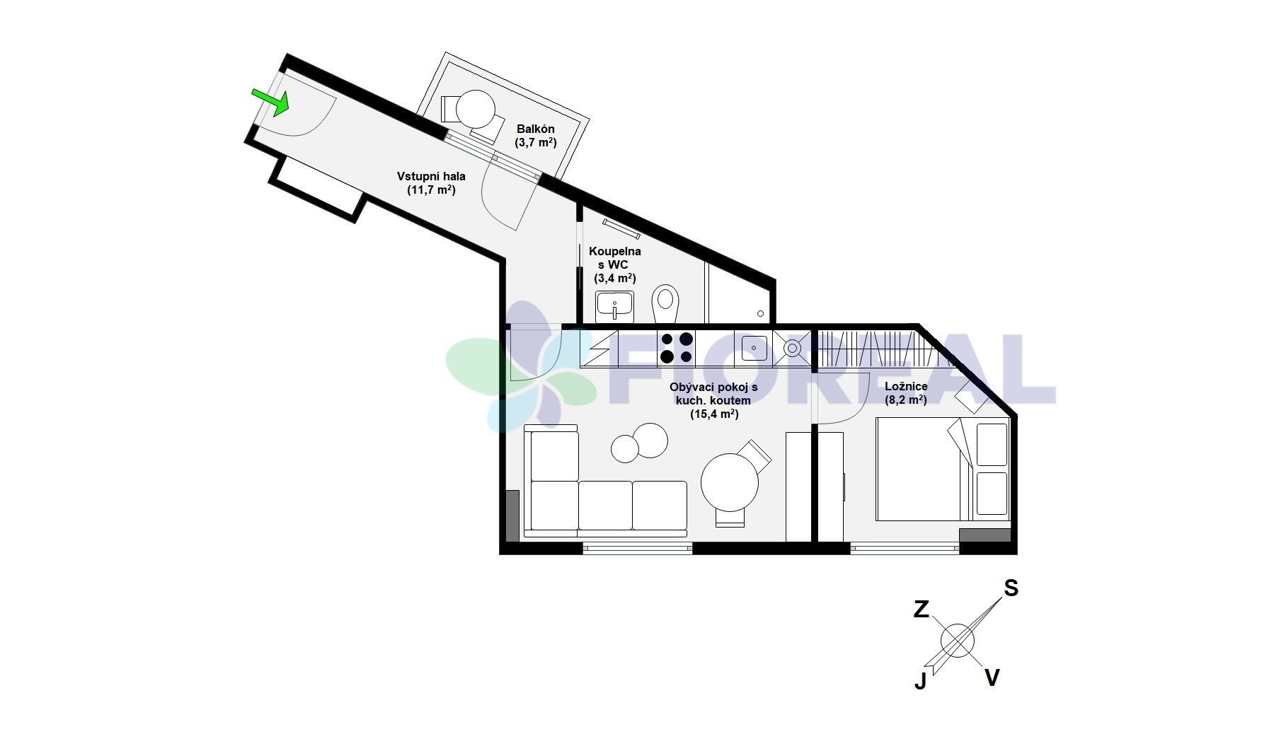 | Dispozice/podlahová plocha: | 2+kk/39 m² |