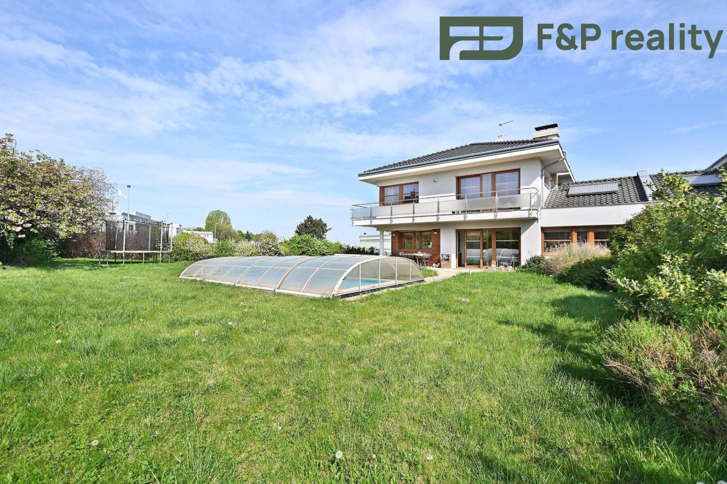 Nemovitost obklopuje krásná zahrada s bazénem, dvěmi garážemi a dalšími dvěmi parkovacími stáními. Příjemné a klidné posezení Vám umožní terasa s výhledem do zahrady. Předehřev vody a bazénu zajišťují sluneční kolektory a o Vaše bezpečí se postará zabezpečovací zařízení celého objektu, které spravuje bezpečnostní firma. Dům taktéž prošel rekonstrukcí fasády a desigového obložení.