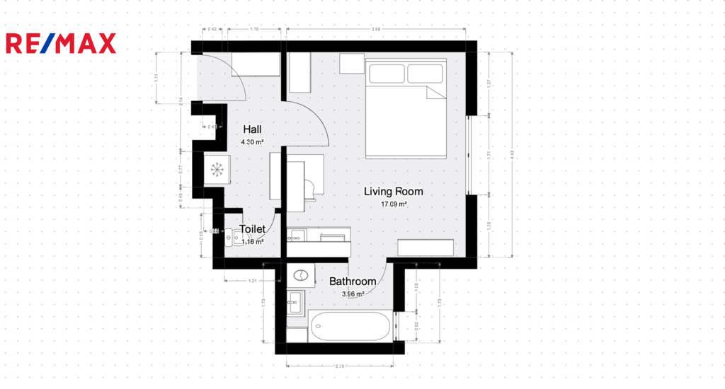 | Dispozice/podlahová plocha: | 1+kk/26 m² |