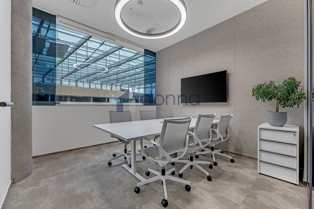 Prosklená budova ve tvaru písmene U s pěti nadzemními a dvěma podzemními podlažími. V budově nyní nabízíme k pronájmu kancelářské jednotky v 5.NP o rozloze od 250 m2 do 1365 m2. Díky efektivnímu půdorysu můžete využít stávající dispozice prostor, nebo si je flexibilně přizpůsobit svým představám. Aktuálně nabízené kanceláře jsou k dispozici ve velmi vysokém standardu včetně zdvojených podlah, LED osvětlení. Dominantou celého prostoru je atrium s bohatou zelení a vodním prvkem. K pracovnímu komfortu přispívá také jídelna přístupná všem nájemcům a kolárna.