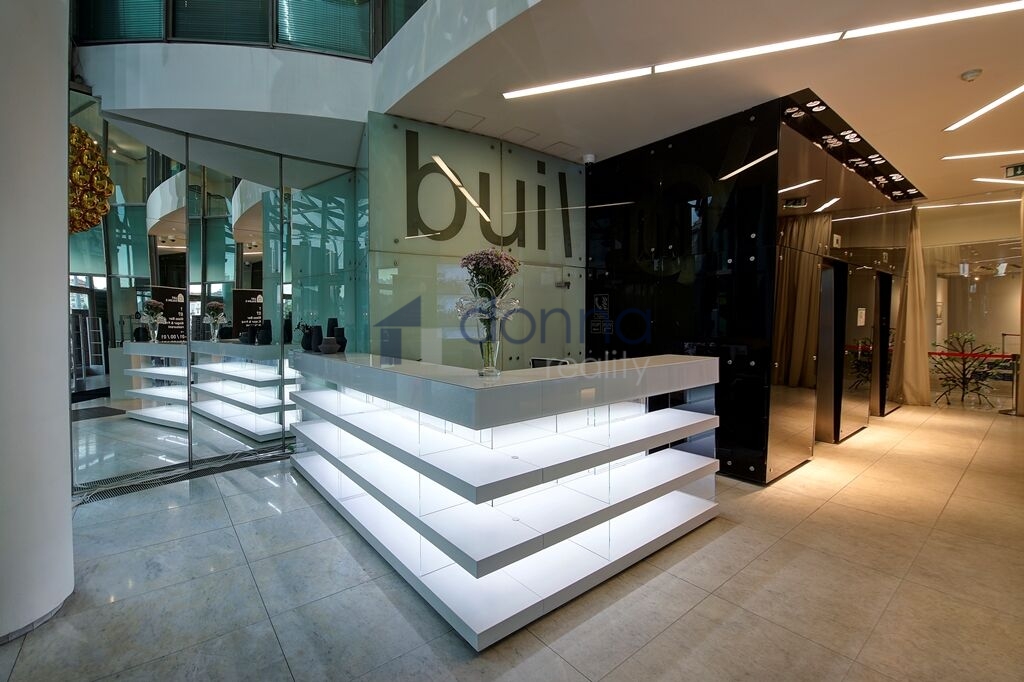 V budově je 24 hod. recepce, výtah, možnost pronájmu zasedací místnosti. Dům nabízí možnost využití terasy s krásným výhledem na Pražský hrad a Vltavu, dále také restauraci či bar v posledním patře s s jedinečným výhledem. Poloha zaručuje efektivní dopravní spojení na hlavní silnice a dálnice ve všech směrech - Pražský městský okruh, D1, D5 a D8 a současně přístup k městské hromadné dopravě jako je metro B Karlovo náměstí a tramvajové linky Jiráskovo náměstí, Palackého náměstí a Karlovo náměstí. Lokalita je velice žádaná a velice lukrativní a strategická pro schůzky, či návštěvy Vašich klientů.