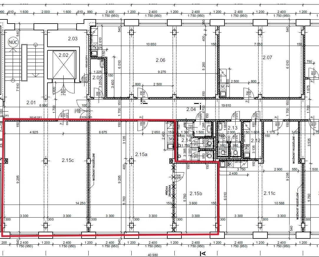 K dispozici jsou i další prostory k pronájmu na patře o výměře 152 m² (A12/2.15) nebo 61 m² (A12/2.15c).