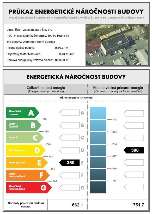 - Energetická náročnost budovy: E - Nehospodárná