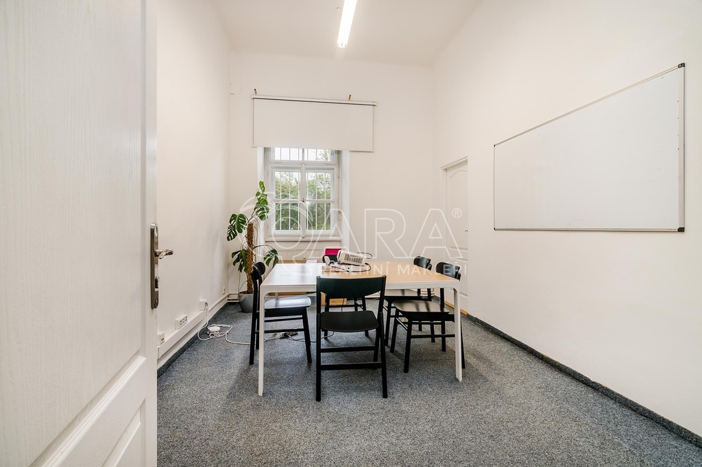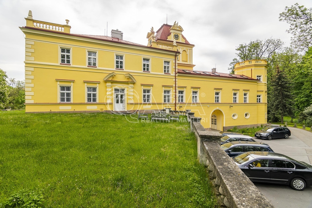 Kancelář vznikla v novobarokní budově, jejiíž historie sahá do 13. století, respektive 17. století, kdy byla přestavena z tvrze na zámek. Prostory disponují 10-ti samostatnými kancelářemi, které lze však vzájemně procházet, tudíž můžete firemní tým efektivně rozmístit, tak aby jednotlivá oddělení mohla mezi sebou efektivně komunikovat a spolupracovat, viz přiložený půdorys v inzerci. Dále je k dispozici malá místnost přístupná z haly, sloužící jako serverovna. Kuchyňka je mezi kancelářemi. Přístupná je velká terasa, kterou mohou nájemníci využívat k odpočinku, ale třeba i ke kancelářské práci na čerstvém vzduchu. V rámci nájmu můžete v areálu zámku parkovat až 6 automobilů.