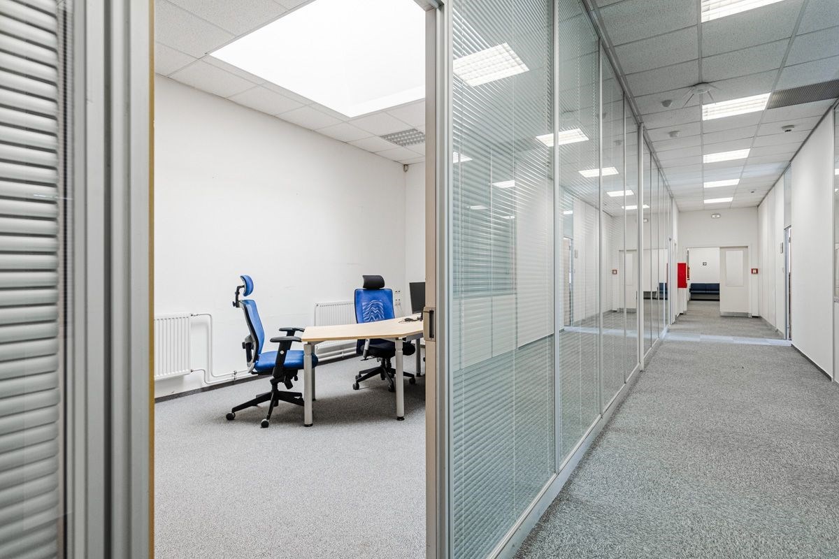 K pronájmu je kancelářská plocha o velikosti 1000 m2 a parkovací stání v rámci areálu. Prostor je členěn skleněnými příčkami se žaluziemi. Kanceláře nejsou vybaveny nábytkem.