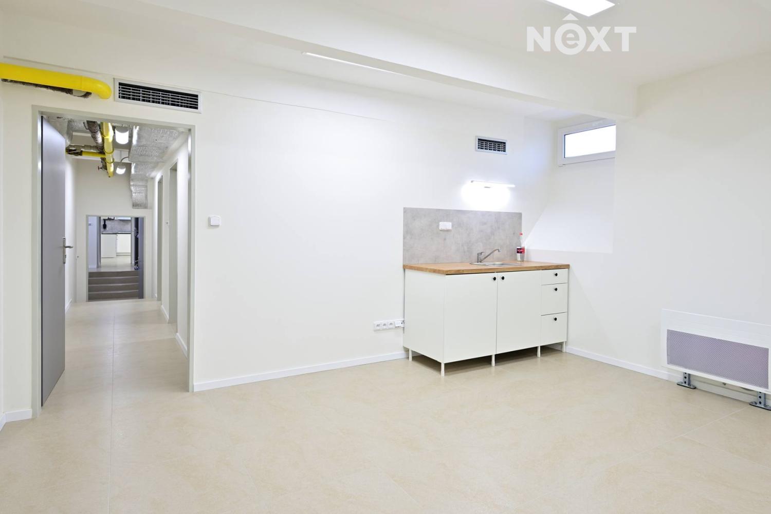 Pronájem jedinečného prostoru o ploše 227 m² v polosuterénu rohového domu ve Strašnicích (ul. V předpolí) po čerstvé kompletní rekonstrukci. Prostor má vlastní vstup přímo z ulice a je členěn do 9 samostatných místností (z toho 2 místnosti s kuchyňským koutem, 4 místnosti s umyvadlem) dále jsou zde 2 koupelny se sprchovým koutem a 4 toalety. Vše nové, ve velmi čistém a funkčním provedení. Ve všech místnostech jsou okna, která nabízí dostatek denního světla a možnost pravidelného větrání. Vytápění zajišťují elektrická otopná tělesa, komfort dále posiluje zabudovaná vzduchotechnika s funkcí ohřevu, chlazení, vlhčení, sušení a filtrace vzduchu – ideální řešení pro provozy s vyššími nároky na vnitřní klima. Prostor je vhodný pro širokou škálu využití: IT, ordinace, terapeutická centra, kosmetické nebo masážní služby, ateliér, zázemí pro e-shop, kanceláře nebo tichou výrobu. Flexibilní dispozice a neutrální design umožňují prostor snadno přizpůsobit konkrétním potřebám s dostatkem soukromí, stabilní teplotou a kvalitním technickým zázemím. Zadní část prostoru ( 27m2, dispozice 1+kk) lze využít nejen k práci či odpočinku, ale také k bydlení, díky vlastnímu kuchyňskému koutu, koupelně a WC zde budete mít naprosté soukromí.