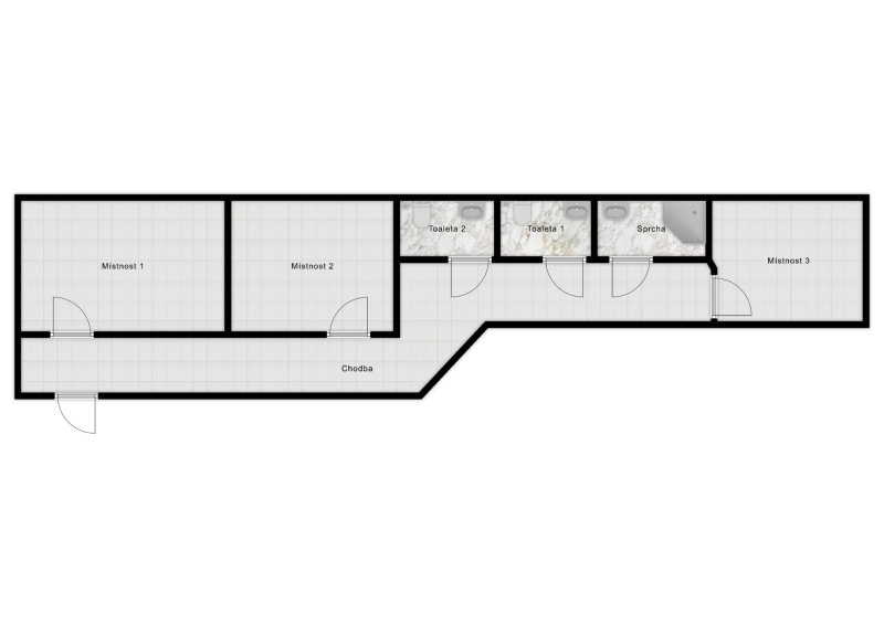 Pronájem komerčních prostor o velikosti 70 m2 (3 místnosti) v podzemí