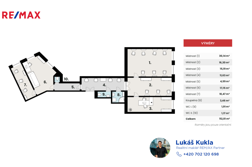 - Plocha kanceláří: 29 m²