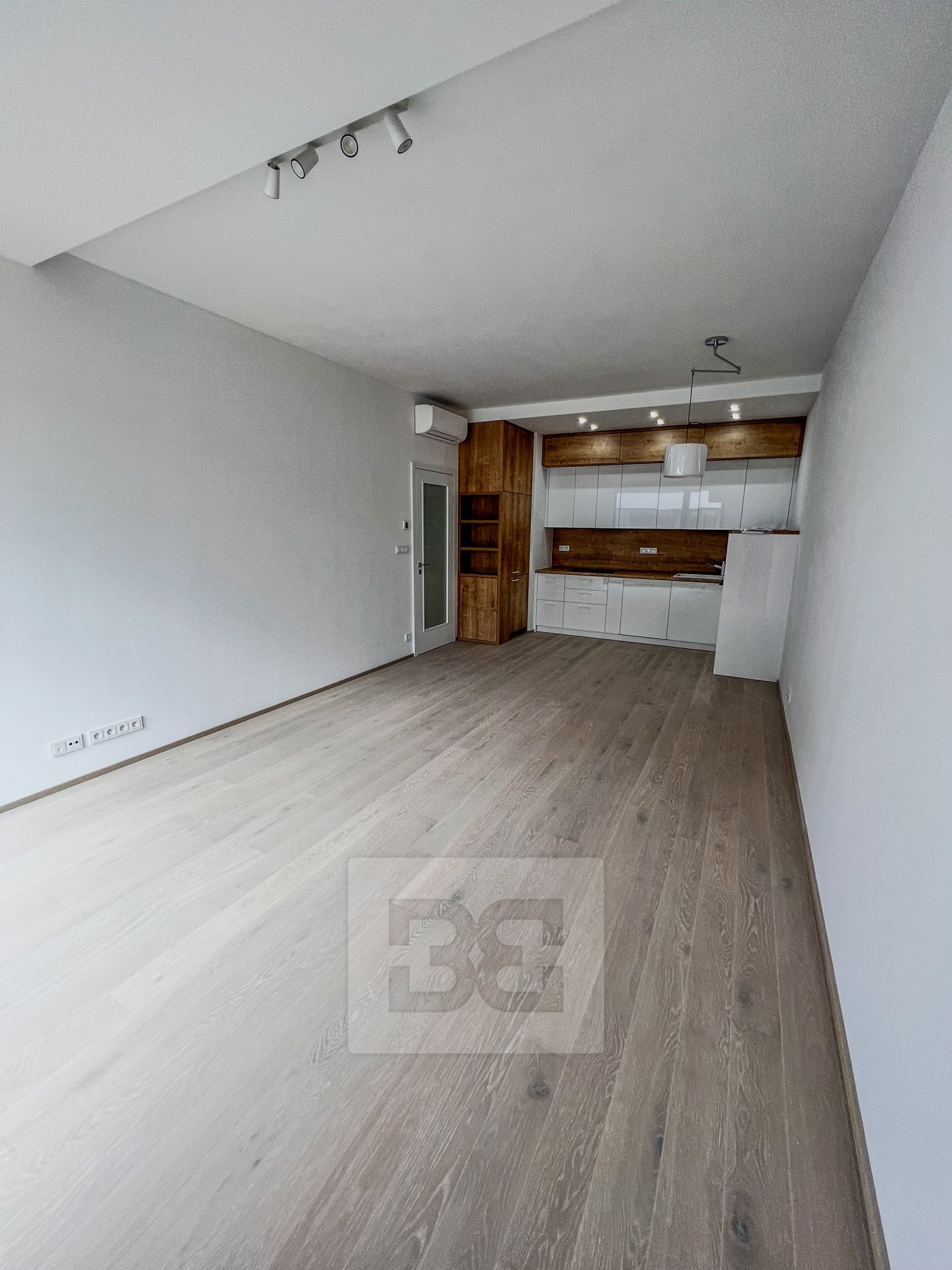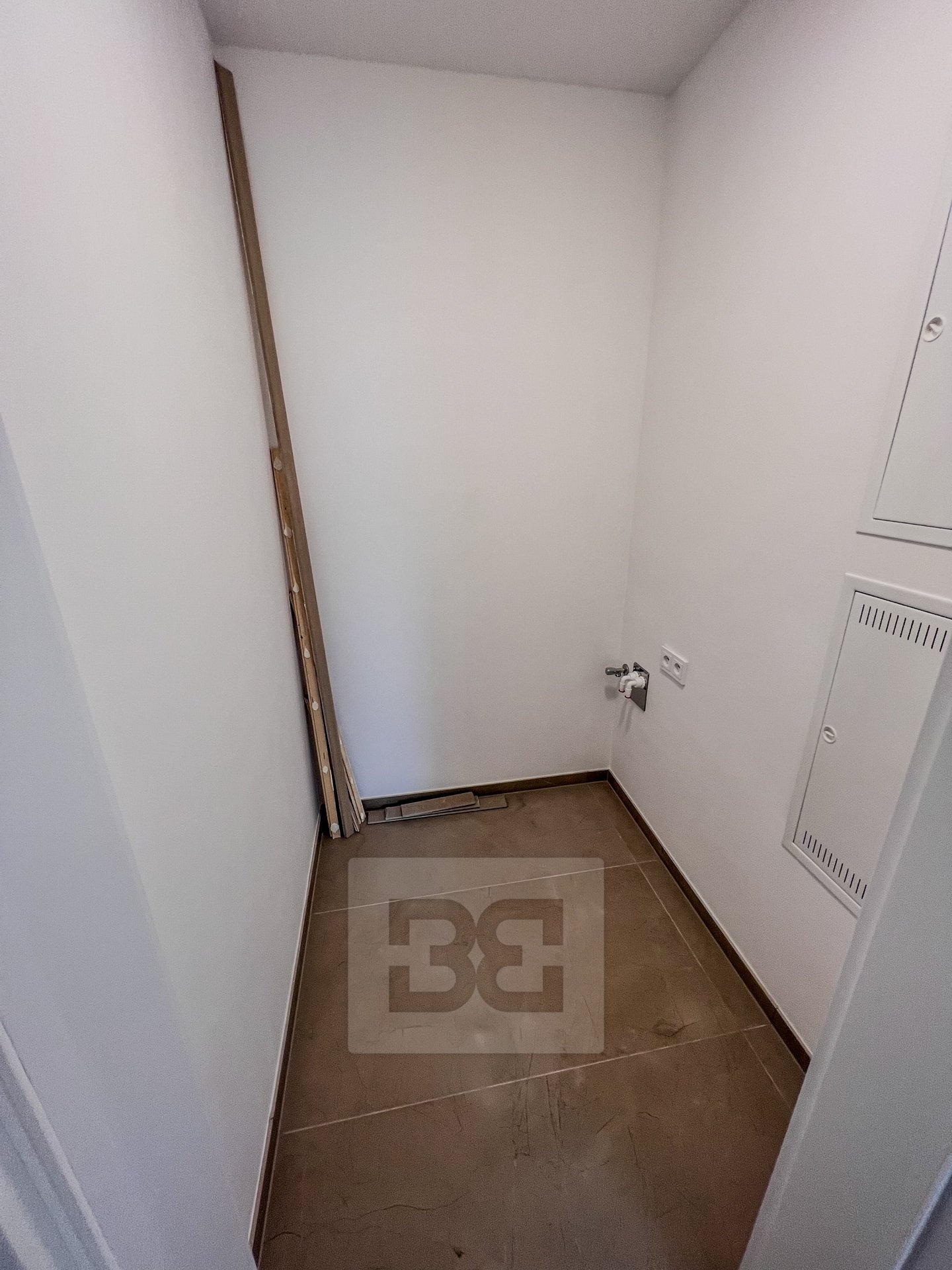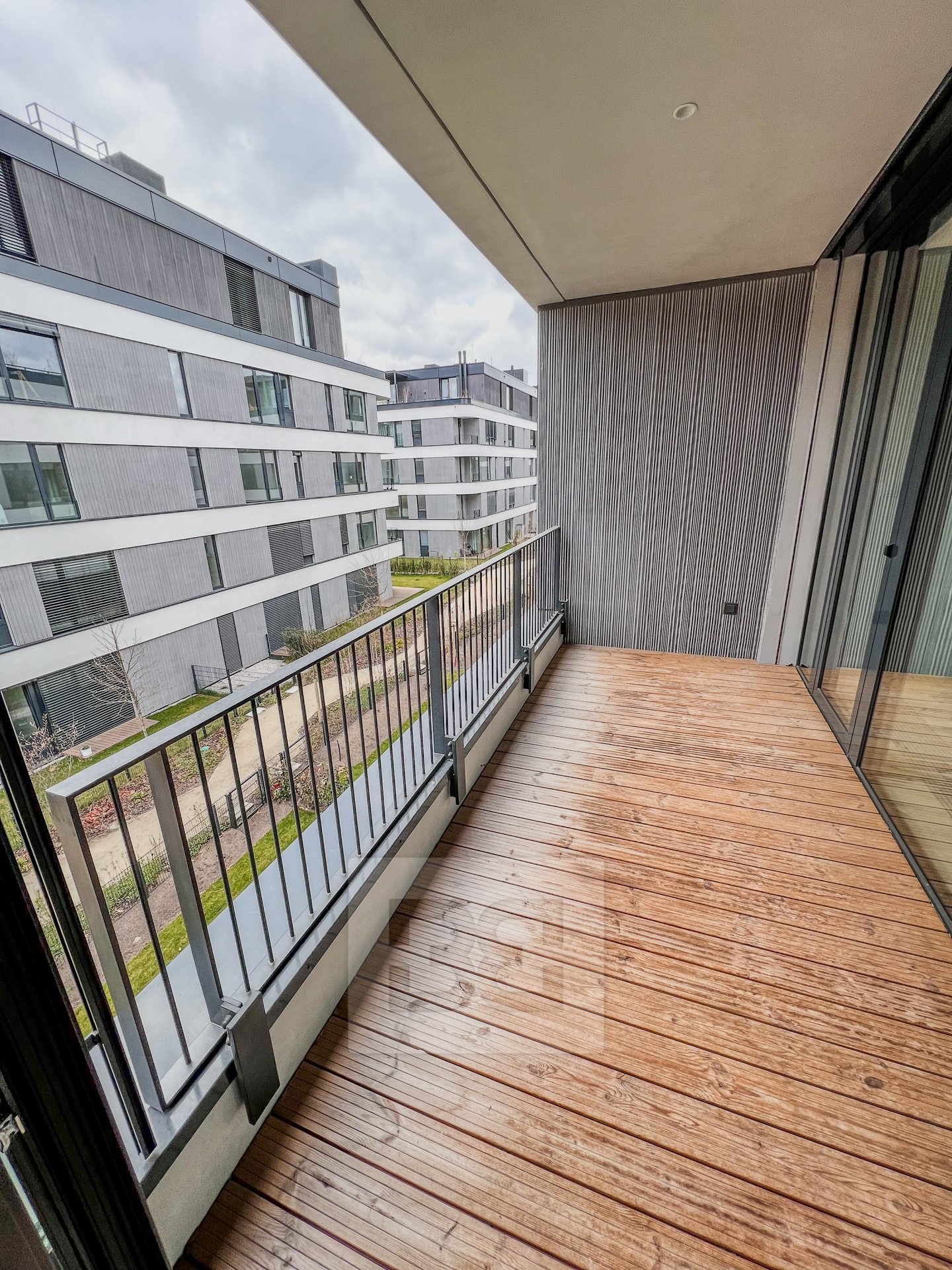 Dispozice bytu: předsíň, ze které je centrální vstup do všech místností – obývací pokoj s kuchyňským koutem a vstupem na balkon s výhledem do klidného vnitrobloku. Kuchyňská linka je plně vybavena (indukční varná deska, digestoř, elektrická trouba, mikrovlnná trouba, myčka nádobí a lednice s mrazákem). Z chodby s vestavnou skříní je dále vstup do dvou ložnic (z jedné z nich je rovněž vstup na balkon), koupelny s vanou a WC, samostatného WC s umyvadlem a také do místnosti vhodné jako šatna nebo sklad.