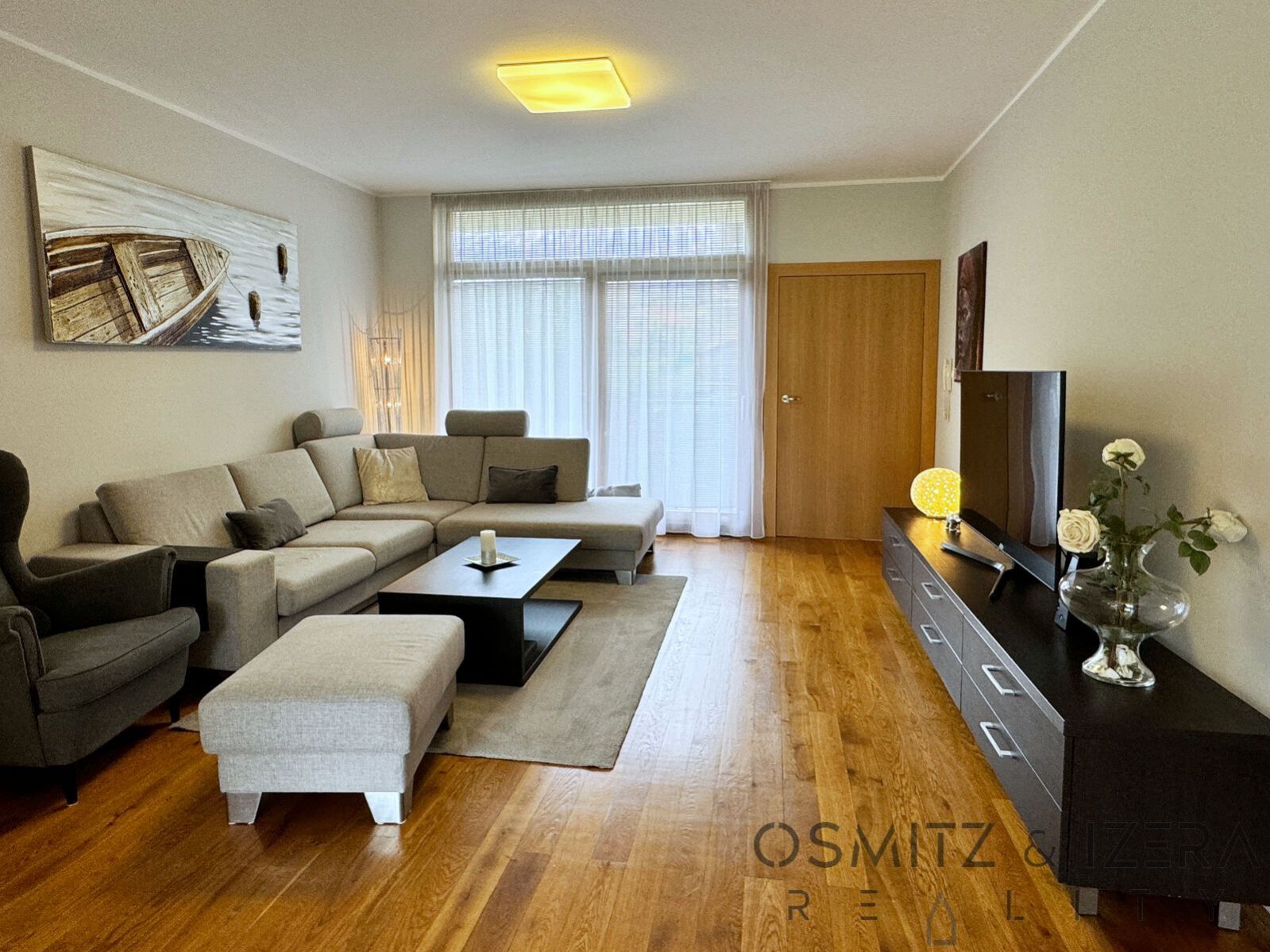 Interiér tohoto bytu je dokonale zařízený a vybavený nejvyšší kvalitou. Otevřený obývací pokoj s jídelním koutem vytváří harmonický prostor pro relaxaci a společné chvíle s rodinou či přáteli. Moderní kuchyňská linka s vestavěnými spotřebiči zaručuje pohodlnou přípravu jídel. Je zde i klimatizace.