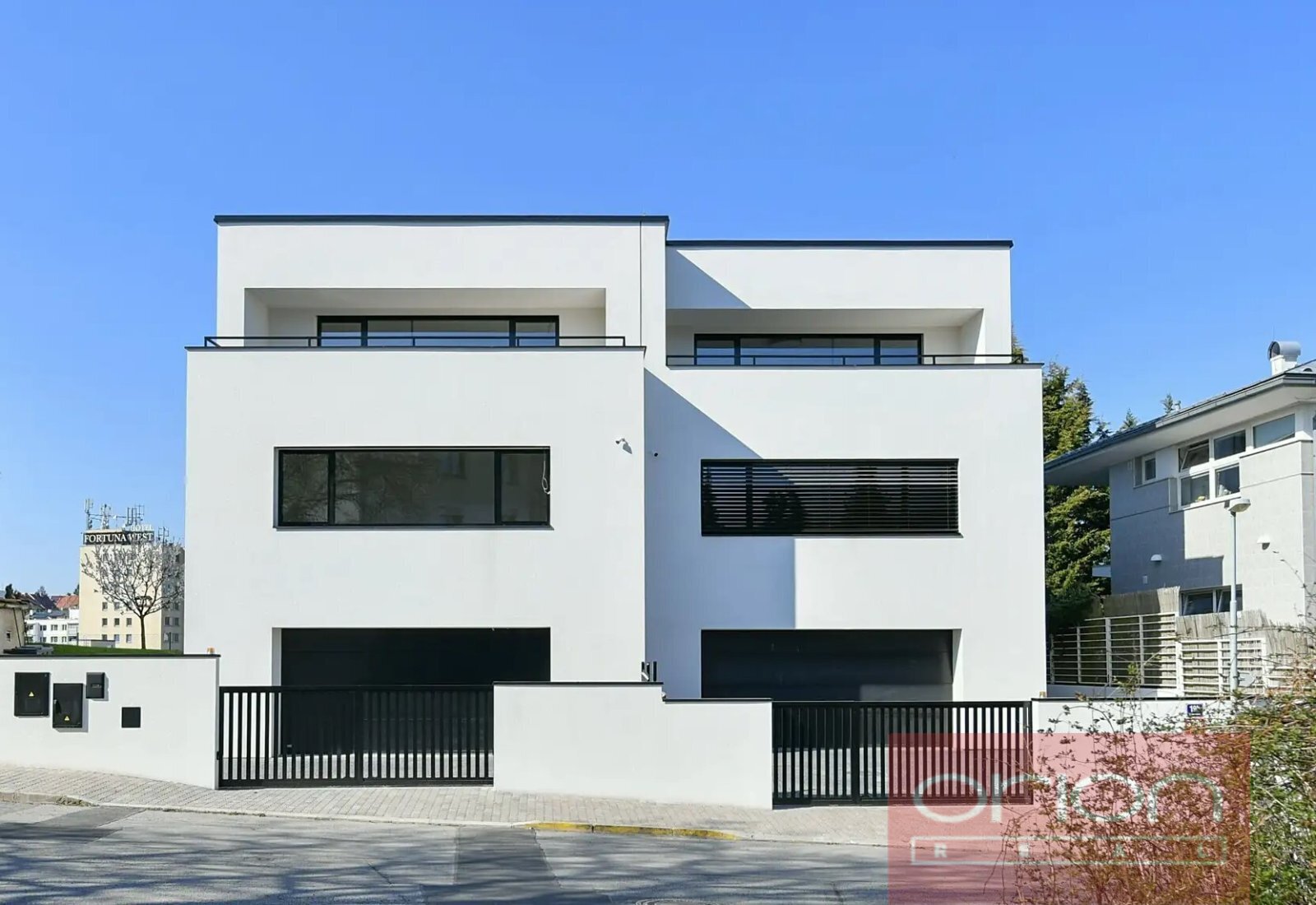 Nabízíme k pronájmu novostavbu - luxusní rodinný dům 7+kk v klidné vilové čtvrti v Praze 5 – Stodůlky s výborným dopravním spojením do centra, do mezinárodních škol, na letiště. Tento moderní rodinný dům na třech podlažích spojuje nadstandardní design a nejnovější technologie. Dům se nachází v klidné rezidenční lokalitě Prahy 5, na rozhraní Motola a Stodůlek. V přízemí domu se nachází vstupní hala, prostorný obývací pokoj se vstupem na zahradu (292 m²) a terasu, otevřený prostor s jídelnou a kuchyní. V prvním patře je hlavní ložnice s vlastní koupelnou a šatnou, samostatná koupelna a dvě ložnice. V posledním patře je ložnice s koupelnou a terasou (17,1 m²), další dvě ložnice a technická místnost s prádelnou. Osvětlené schodiště propojuje celý dům. Dům je dokončený s dřevěnými podlahami, koupelnami a dalším vybavením: rekuperace, tepelné čerpadlo, klimatizace, elektrické venkovní žaluzie, hliníková okna s trojsky, centrální vysavač, alarm, bezpečnostní kamerový systém a videotelefon. Garáž je prostorná pro dva vozy s nabíjením pro elektromobily a další dvě parkovací místa jsou na pozemku. Užitná plocha domu 282 m², plocha pozemku 426 m², plocha zahrady 292 m². Kolaudace v roce 2025, energetický štítek třídy B velmi úsporná.