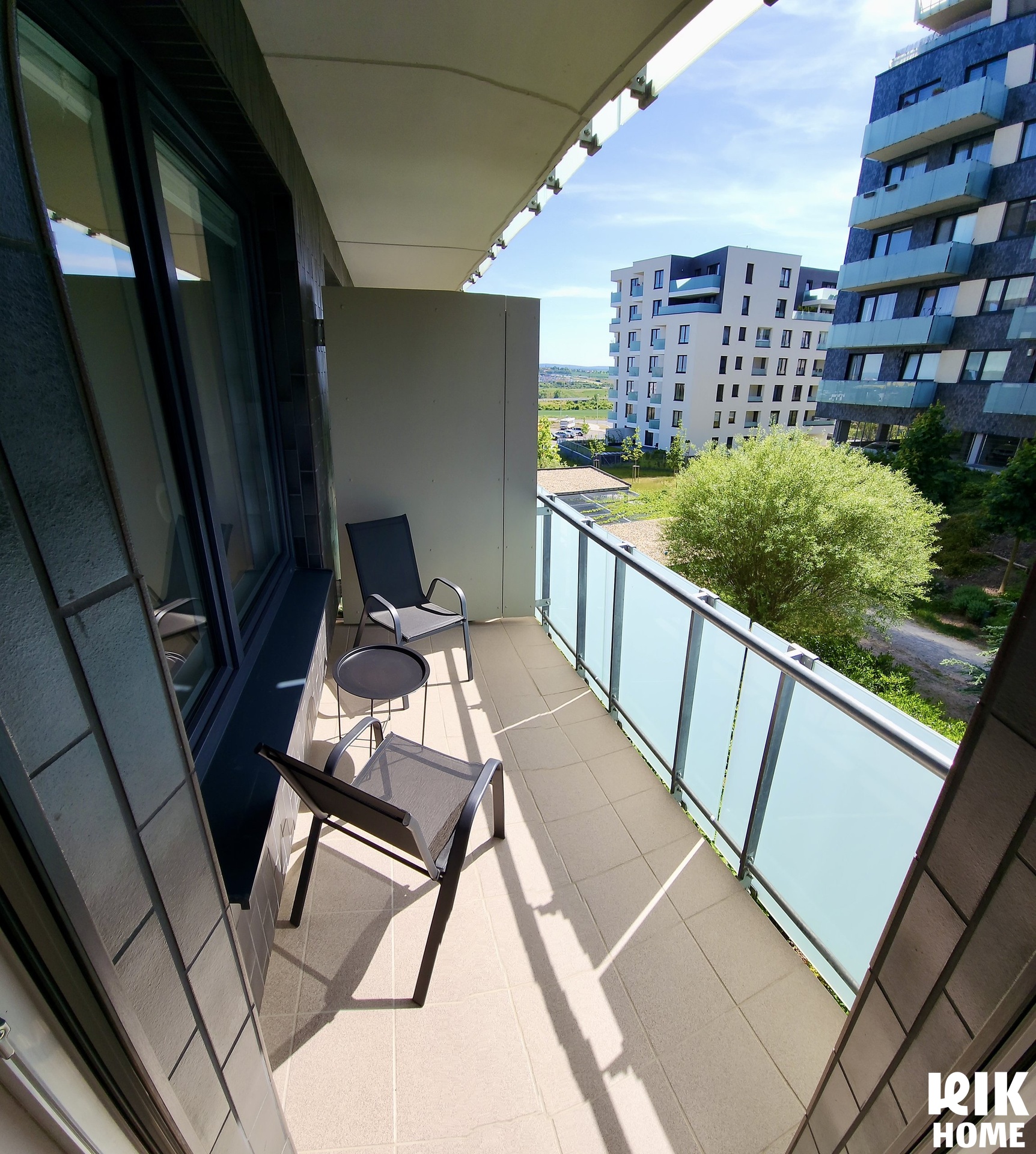 Nabízíme k pronájmu moderní a kompletně zařízený byt 2+kk o podlahové ploše 52,3 m2 s komorou a prostorným balkonem (4,7 m2). Byt se nachází v 1. NP novostavby v atraktivní lokalitě komplexu Britská čtvrť na adrese Klementova 2887/4, Praha 5. Byt je orientován na jihozápad s výhledem do upravené zeleně a budoucí nájemce bude teprve druhým obyvatelem.