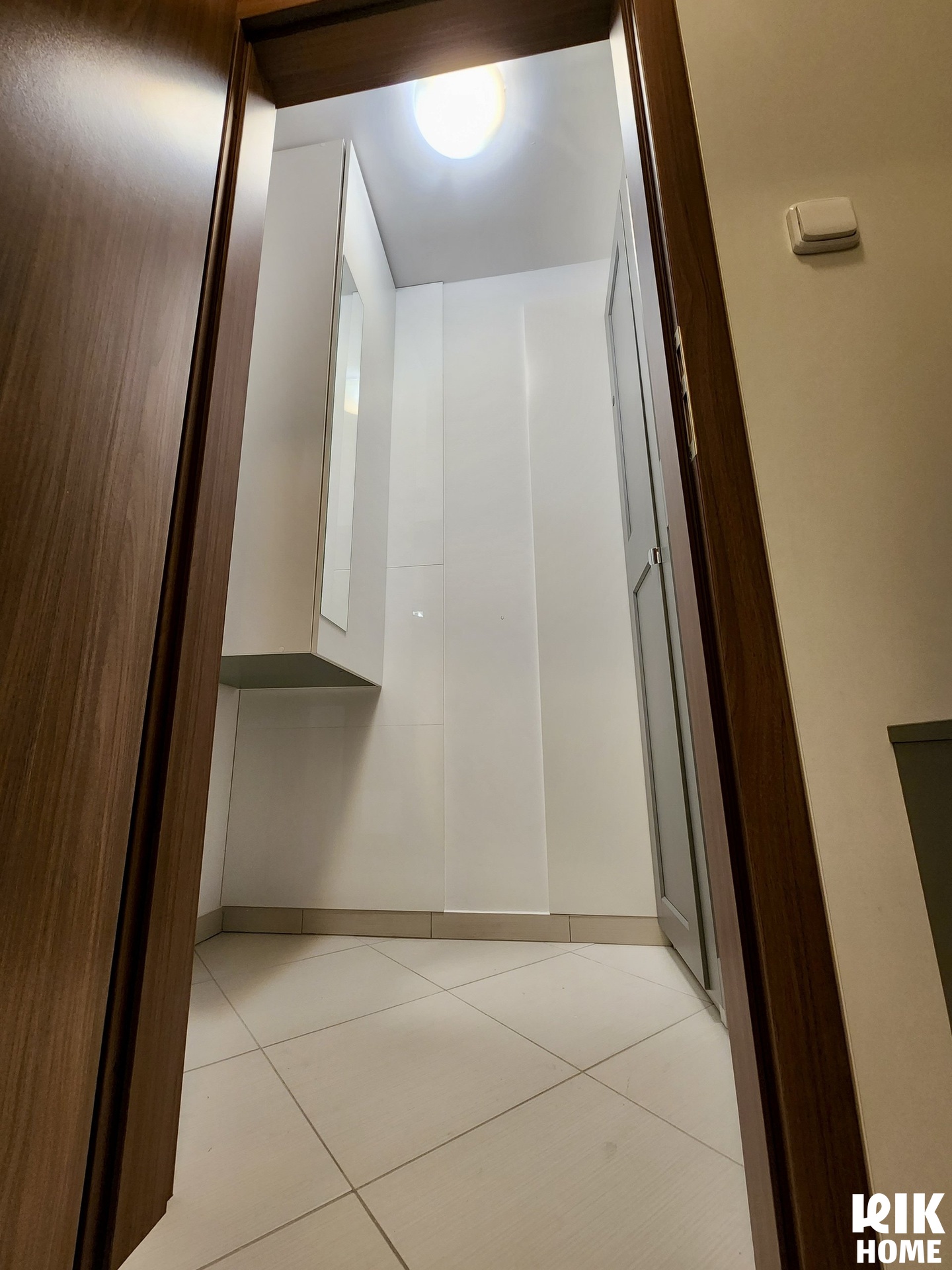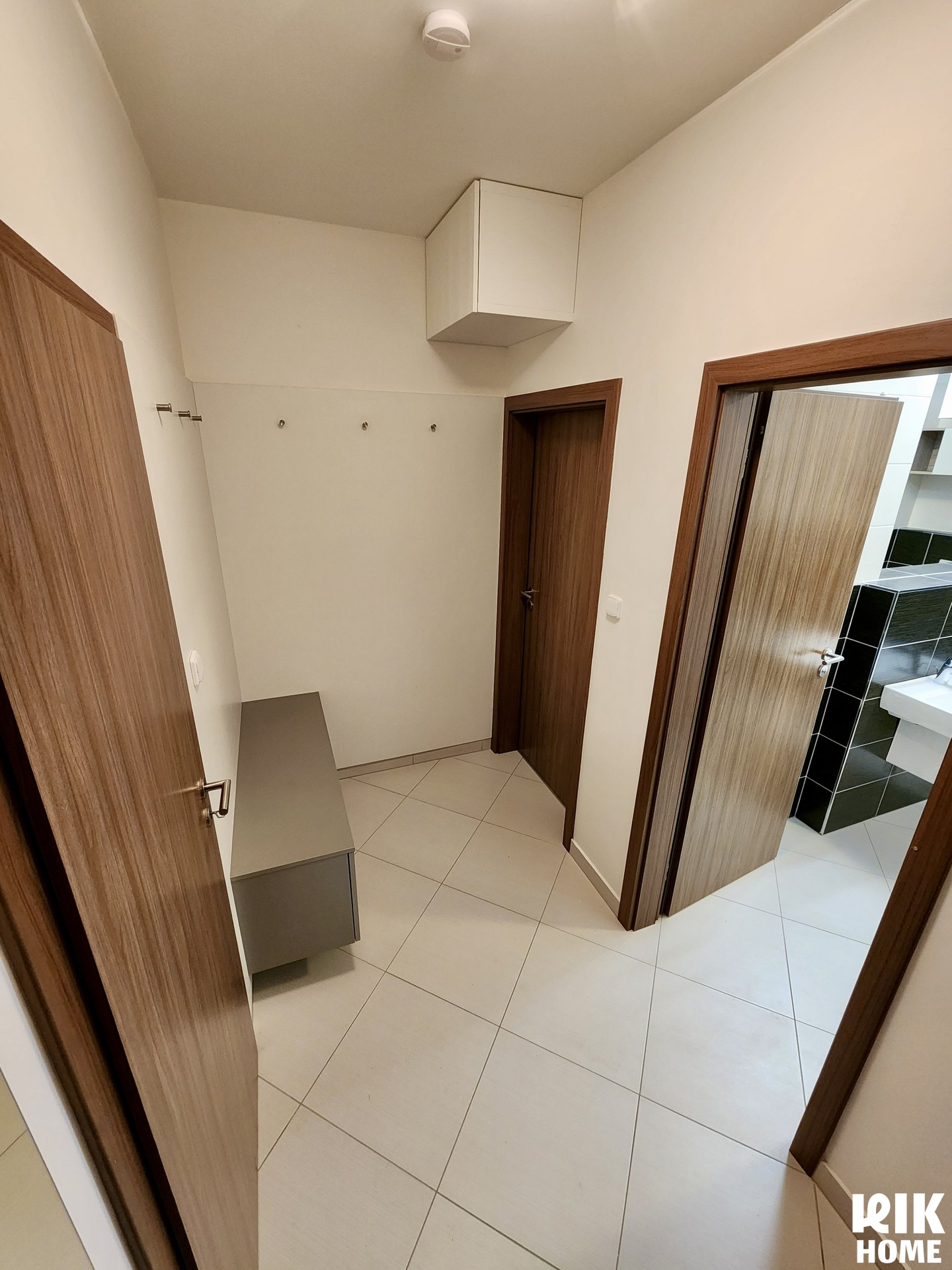 V chodbě je k dispozici předsíňová věšáková stěna, závěsný botník, zrcadlo a skříňky u stropu. Součástí bytu je praktická komora s vysokou skříní a dvěma závěsnými skříňkami. Na balkoně je připraven stolek a dvě křesla.