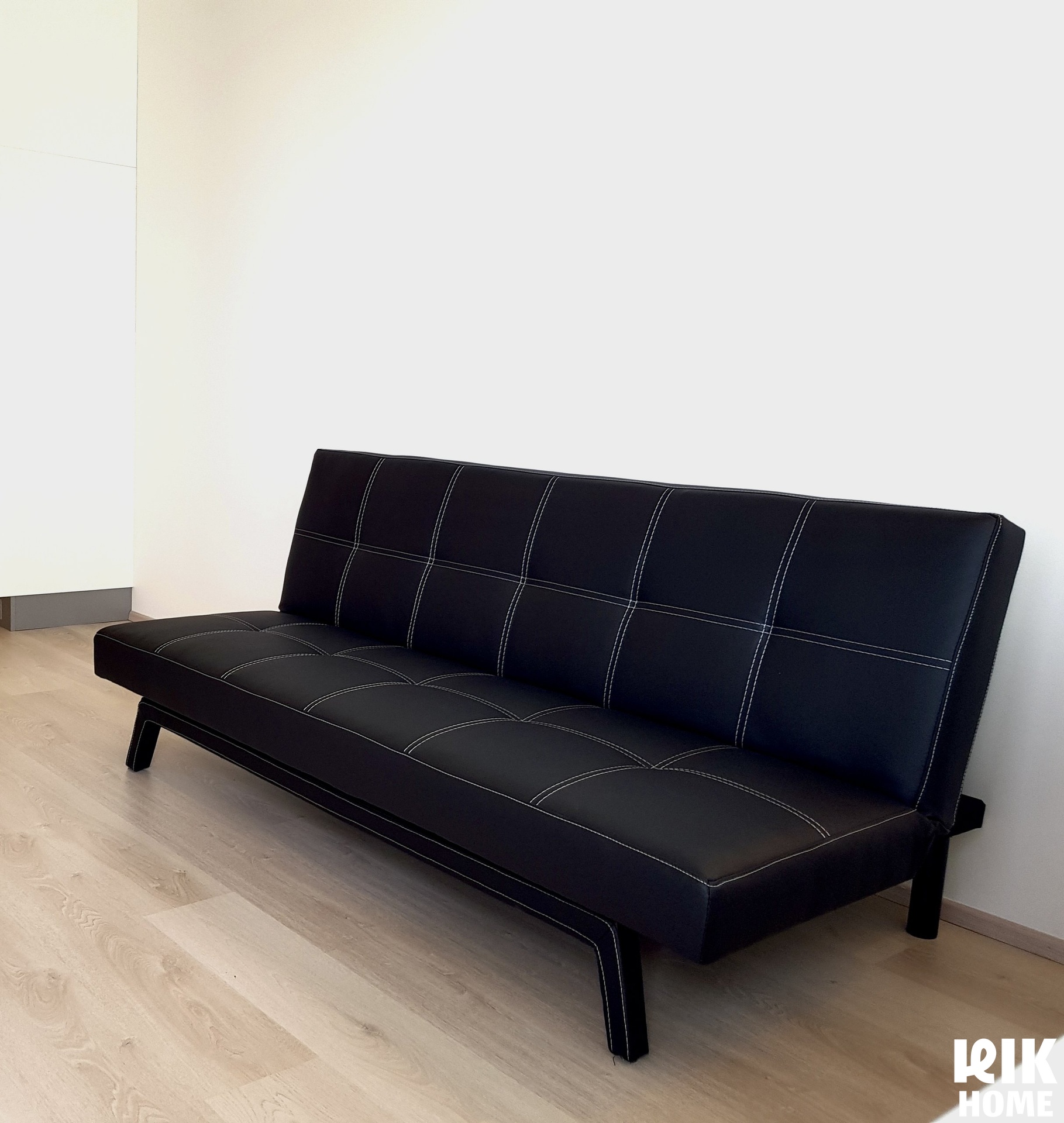 Obývací část s kuchyňským koutem je vybavena moderní kuchyňskou linkou na míru. K dispozici je plně integrovaná myčka nádobí, sklokeramická varná deska, vestavná trouba, mikrovlnná trouba, digestoř a prostorná lednice se samostatným mrazákem. Součástí je také jídelní stůl se dvěma židlemi. V obývacím pokoji se nachází rozkládací sedací pohovka a sada závěsných skříněk.