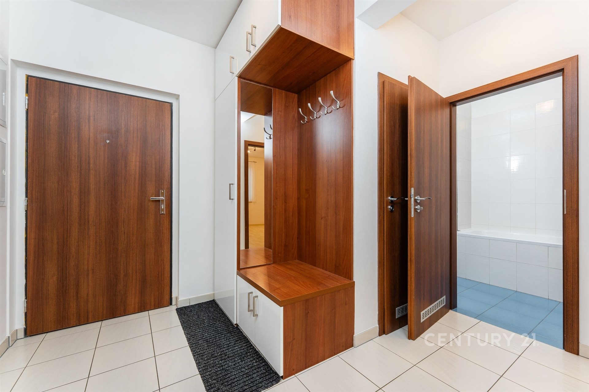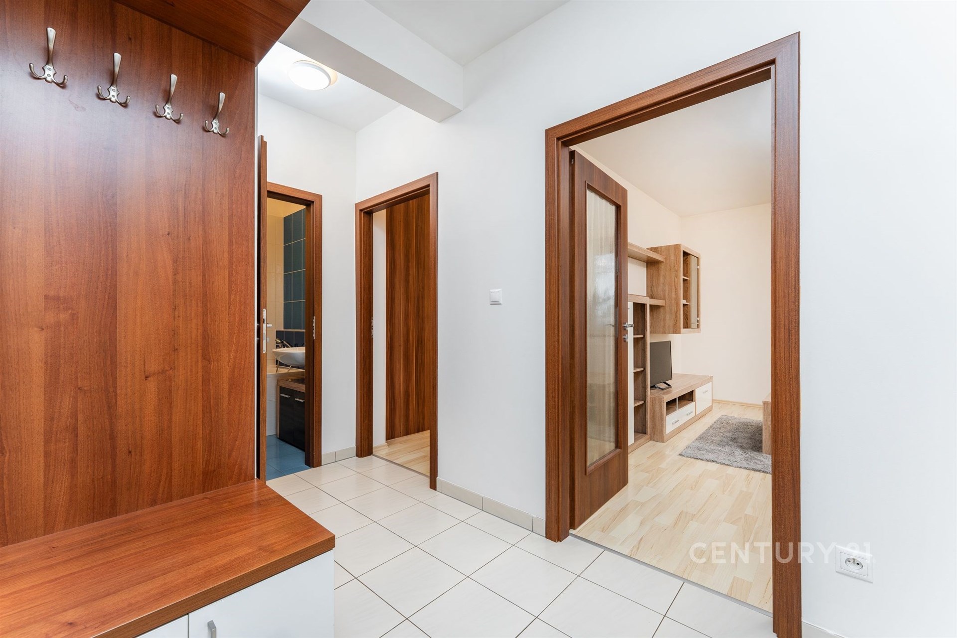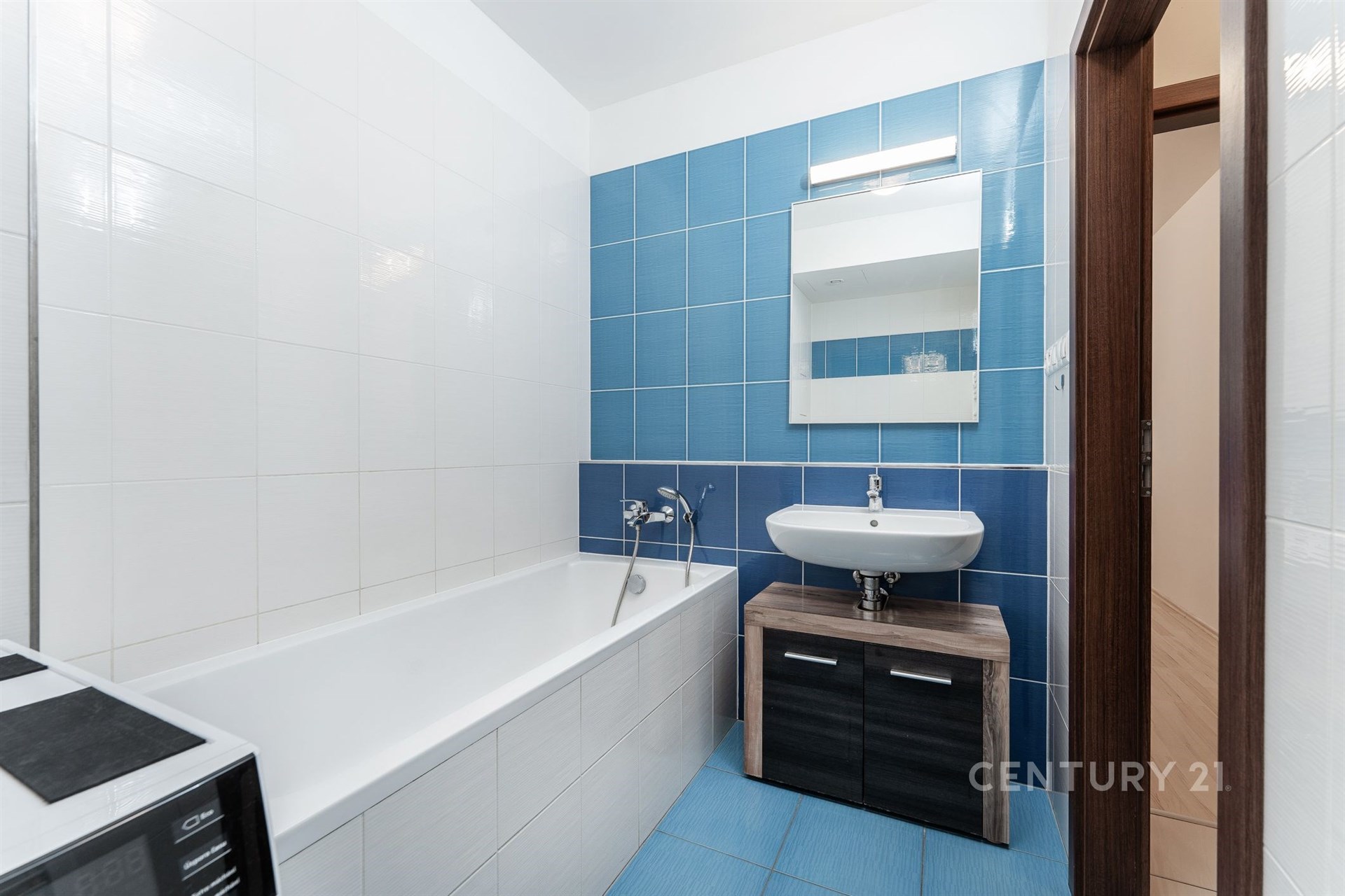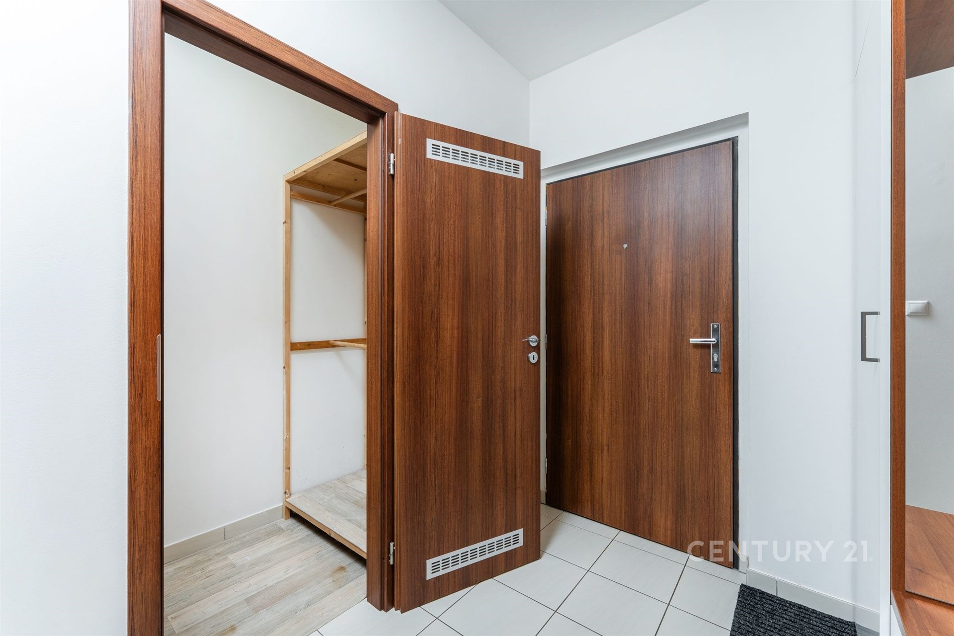 V bytě je k dispozici samostatná komora, kterou lze využít jako šatnu či úložný prostor. Moderní kuchyňská linka je vybavena lednicí a myčkou. Vstup do bytu je bezbariérový – pohodlně se do něj dostanete také výtahem přímo z garáží.