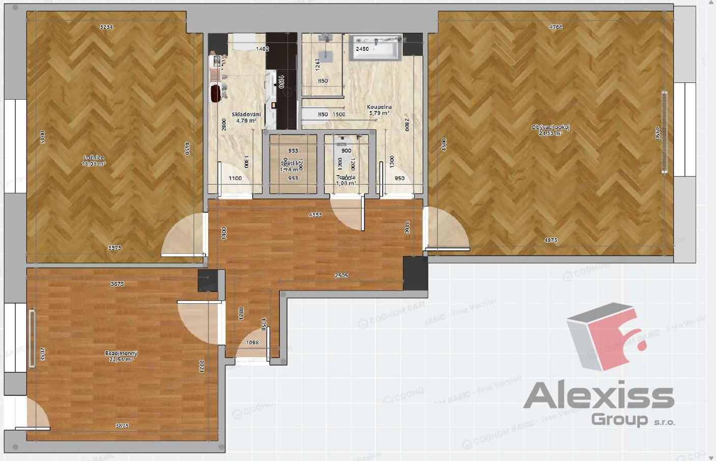 - Dispozice bytu: 3+kk