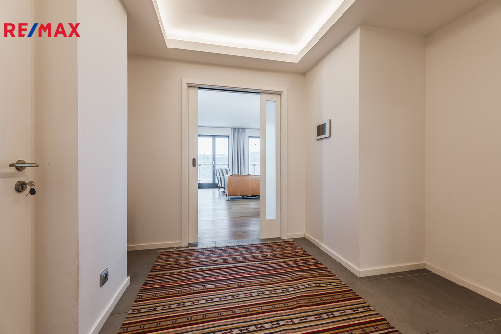 Nabízíme k pronájmu nadstandardní byt 3+kk v prestižní rezidenci River Watch Dock – Praha 8, Libeň, s výjimečným výhledem na marinu, a okolní zeleň.