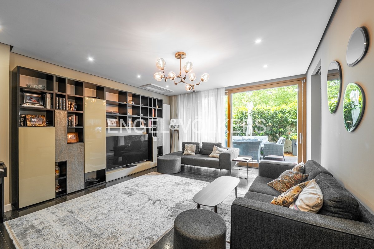 – prostorný obývací pokoj se vstupem na terasu a sezení, moderní plně vybavený kuchyňský kout a jídelna s výhledem do zahrady