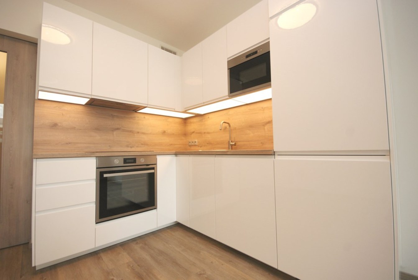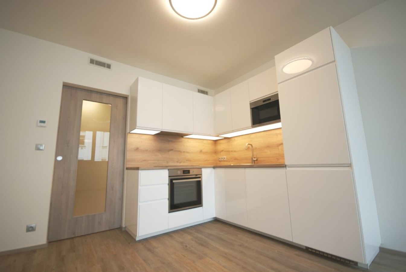 Nabízíme k pronájmu nezařízený 1+kk o výměře 35,8m2. 1+kk se nachází v 1. patře novostavby. V přízemí domu se nachází recepce s 24h službou, 4 výtahy, upravený vnitroblok - do budoucna vznikne kavárna. 1+kk je vybaven moderní kuchyňskou linkou s vestavěnými spotřebiči (indukční deska, horkovzdušná trouba, lednice s mrazákem, myčka na nádobí, mikrovlnná trouba). Dále v předsíni po celé délce stěny vestavěné šatní skříně se zrcadlovou stěnou, koupelna se sprchovým koutem, přípojkou na pračku a oddělenou toaletou. Podlahové vytápění, rekuperace vzduchu, alarm, video vrátný, bezpečnostní dveře. Byt se nachází u metra Českomoravská, tramvaj zastávky, OC Harfa, O2 aréna. Nájem 16.000,-Kč + služby 4.500,-Kč + elektřina bude převedena na nájemce. Kauce ve výši 21.000,-Kč a Provize RK ve výši jednoho nájmu + DPH. K nastěhování od května.