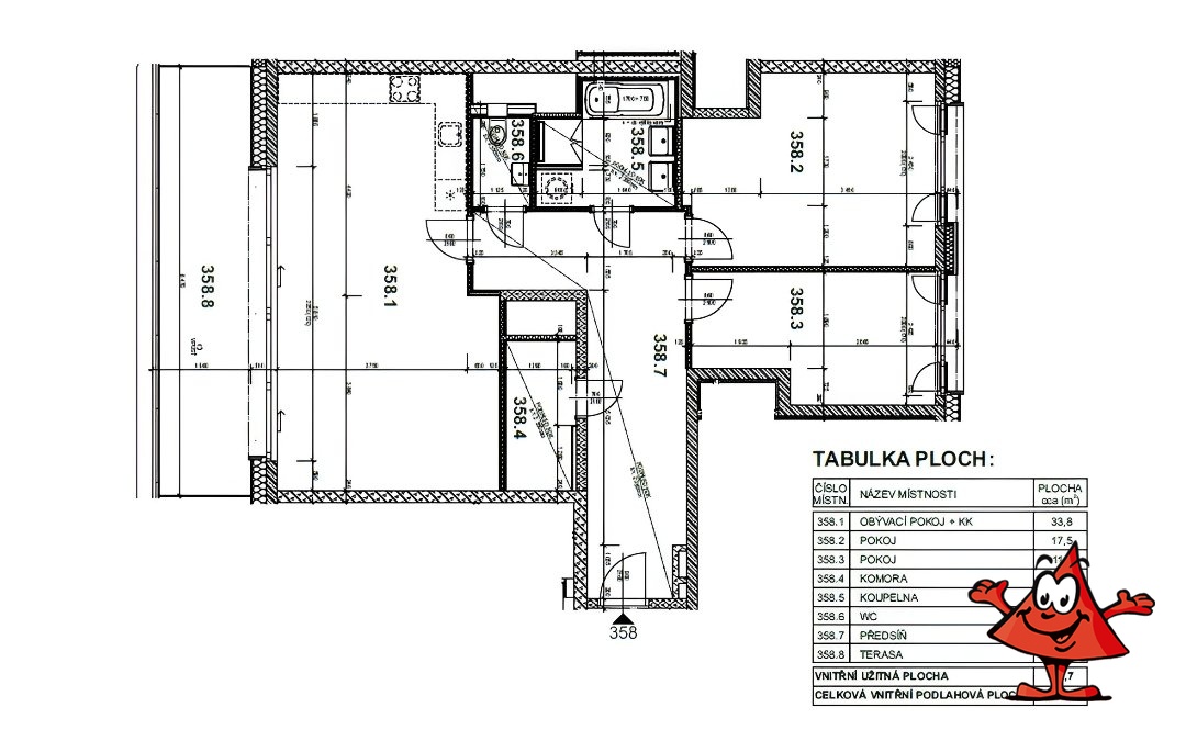 | Dispozice/podlahová plocha: | 3+kk/93 m² |