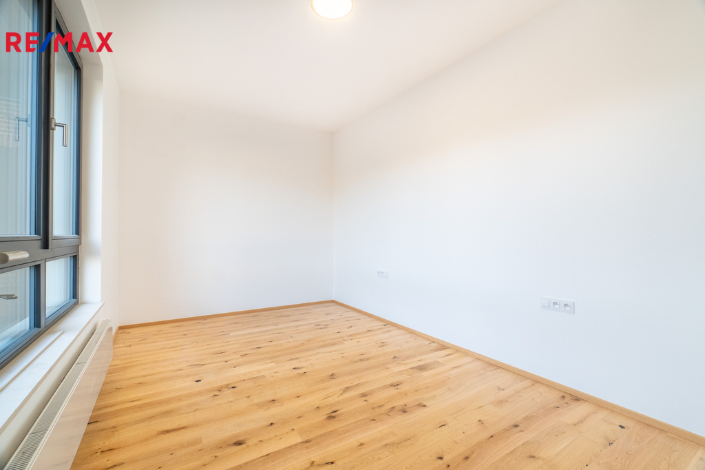 V bytě jsou dřevěné podlahy a v dohledné době budou dodělány venkovní žaluzie.