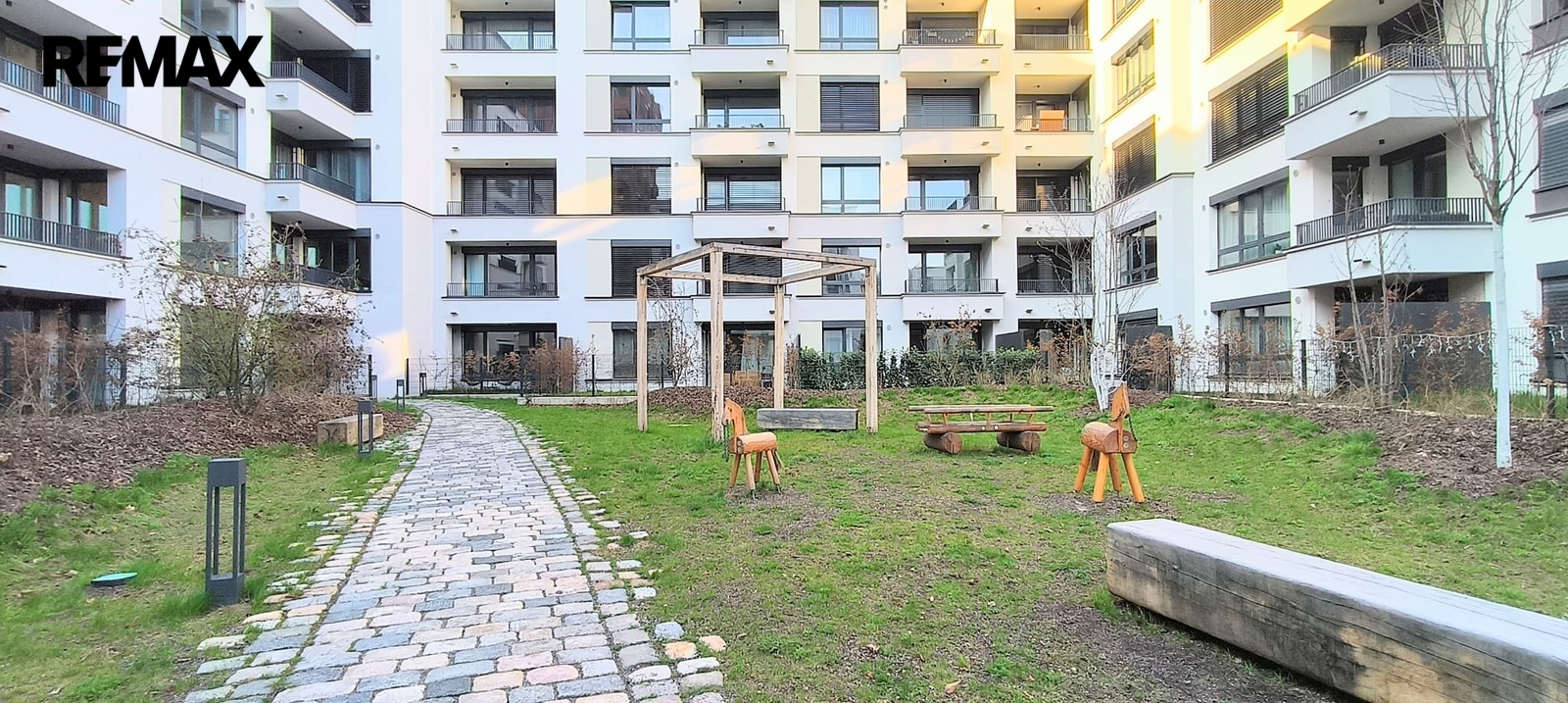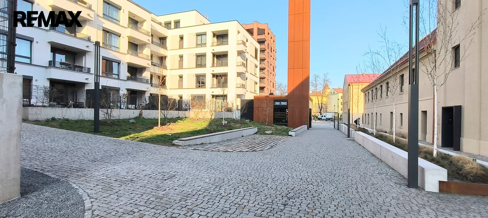 Příjemným bonusem je samotný vnitroblok, kde se nachází oblíbená kavárna Zrno/Zrnko – ideální místo pro ranní kávu či odpolední relax.