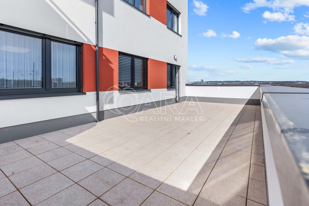 Pronájem nového bytu 3+kk 70 m2 s nadstandardní terasou 43 m2, garáží