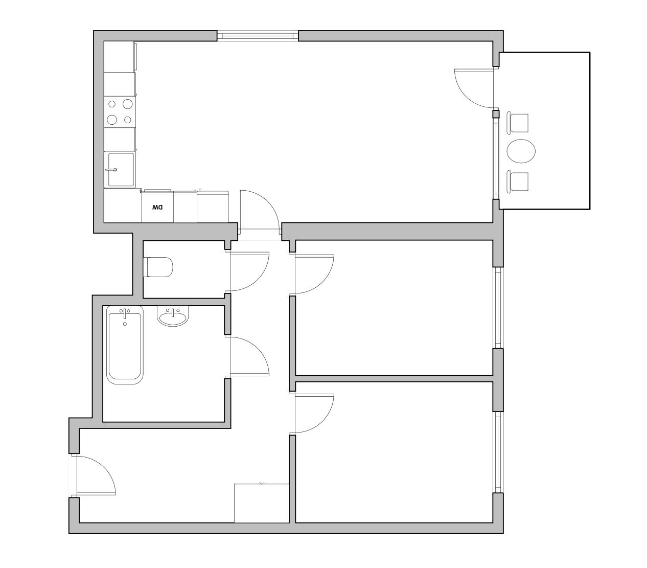 Dispozice zahrnuje obývací pokoj s kuchyňským koutem a vstupem na prostorný balkon, dvě samostatné neprůchozí ložnice, koupelnu s vanou, samostatnou toaletu a předsíň s velkou šatní skříní.
