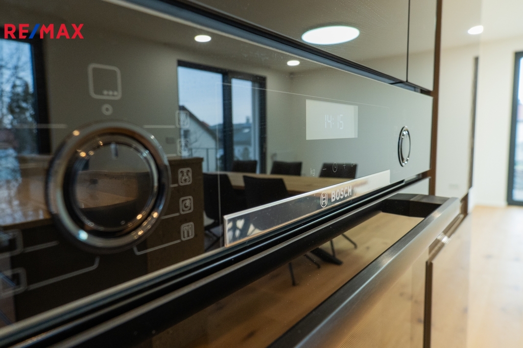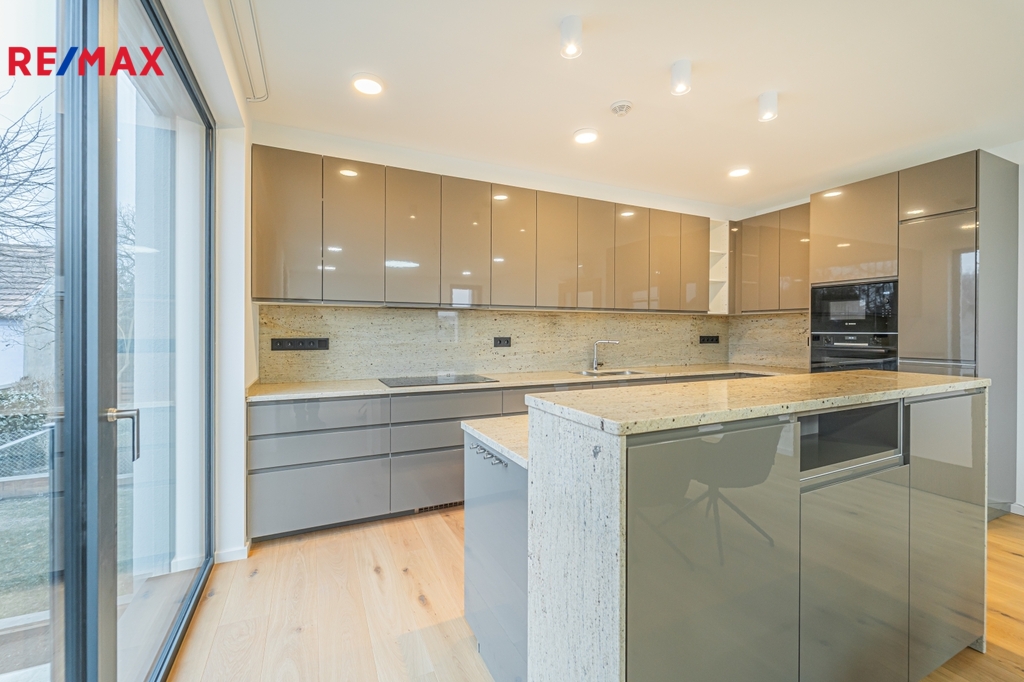 Byt je vybaven novou kuchyňskou linkou na míru včetně spotřebičů Bosch, klimatizací, zabezpečovacím alarmem a vestavěnými skříněmi. Součástí pronájmu je sklepní kóje a dvě venkovní parkovací stání. V domě je k dispozici společná místnost s pračkou a sušičkou.