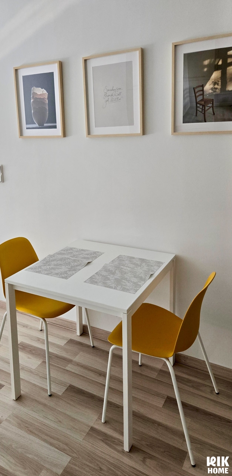 - Kuchyň: Moderní linka na míru v oddělené zóně, plně vybavená vestavnými spotřebiči (myčka, sklokeramická deska, trouba, lednice s mrazákem, mikrovlnná trouba, digestoř). Jídelní stůl + 2 židle.