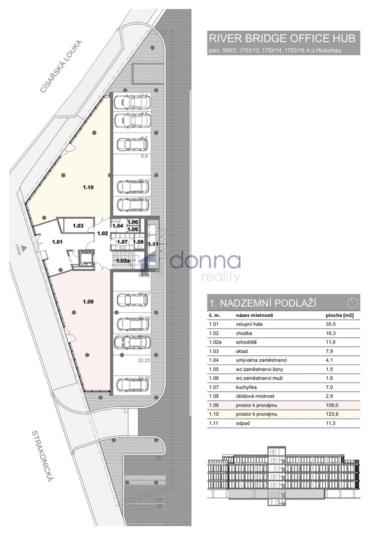 Nabízíme k pronájmu komerční prostory o výměře 99 m2, v moderním administrativním komplexu River Bridge Office Hub, Praha 5 – Hlubočepy v ulici Strakonická. Prostory se nacházejí v 1.NP se samostatným vchodem přímo z ulice. Na patře je společná kuchyňka, sprchy a toalety. Budova River Bridge Office Hub je nově projekt administrativní budovy, která se v roce 2026 stane hlavní dominantou areálu River Business Centre. Tento unikátní projekt nabízí moderní a inspirativní pracovní prostředí na břehu řeky Vltavy v bezprostřední blízkosti Dvoreckého mostu. Výhled na řeku Vltavu, Vyšehrad, ale i blízkost všech potřebných služeb, stejně tak i výborná dostupnost MHD, předurčuje budovu River Bridge Office Hub k naplnění požadavků i těch nejnáročnějších nájemců.